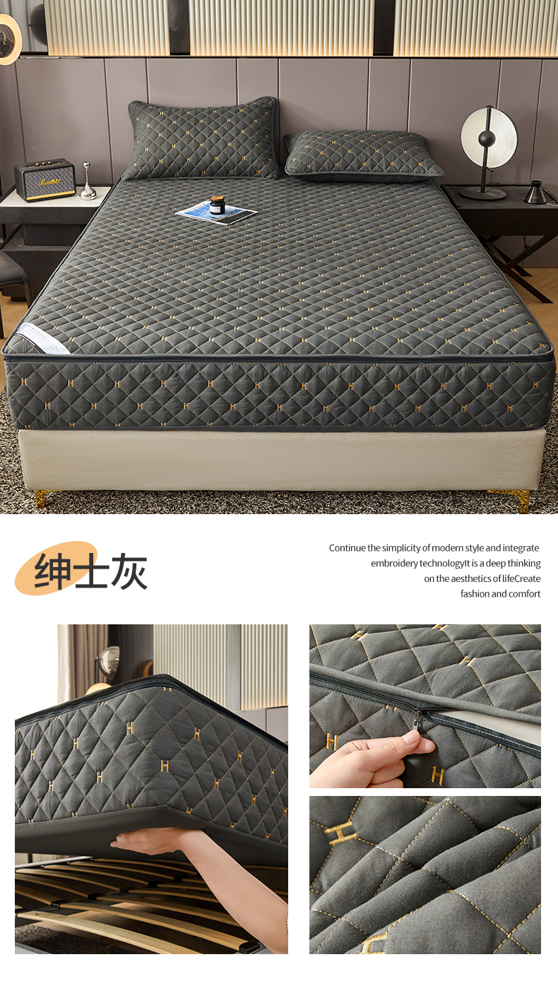 商品名称:(总)纤雅床笠 2025新款H刺绣磨毛全包单床笠床笠单件单品床笠