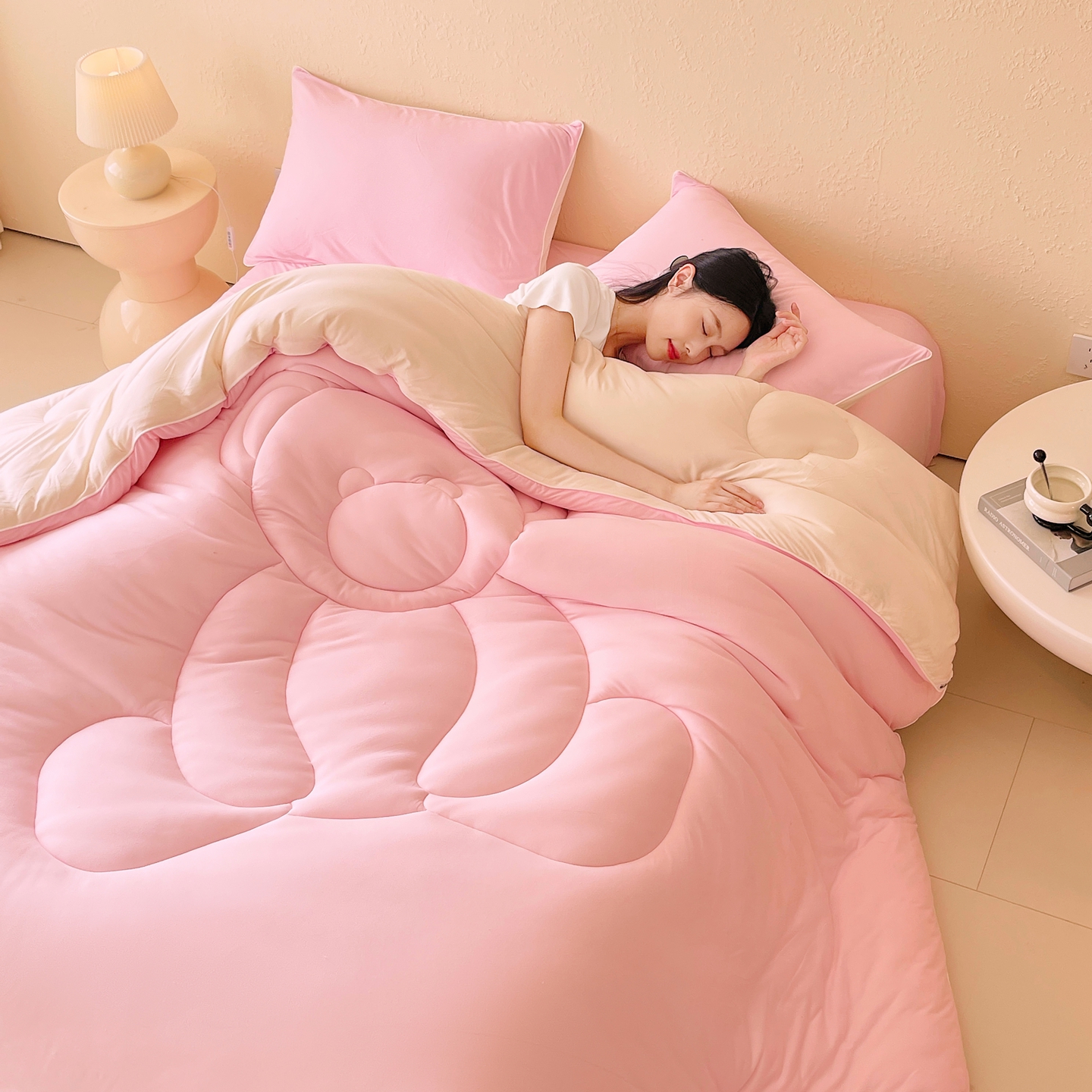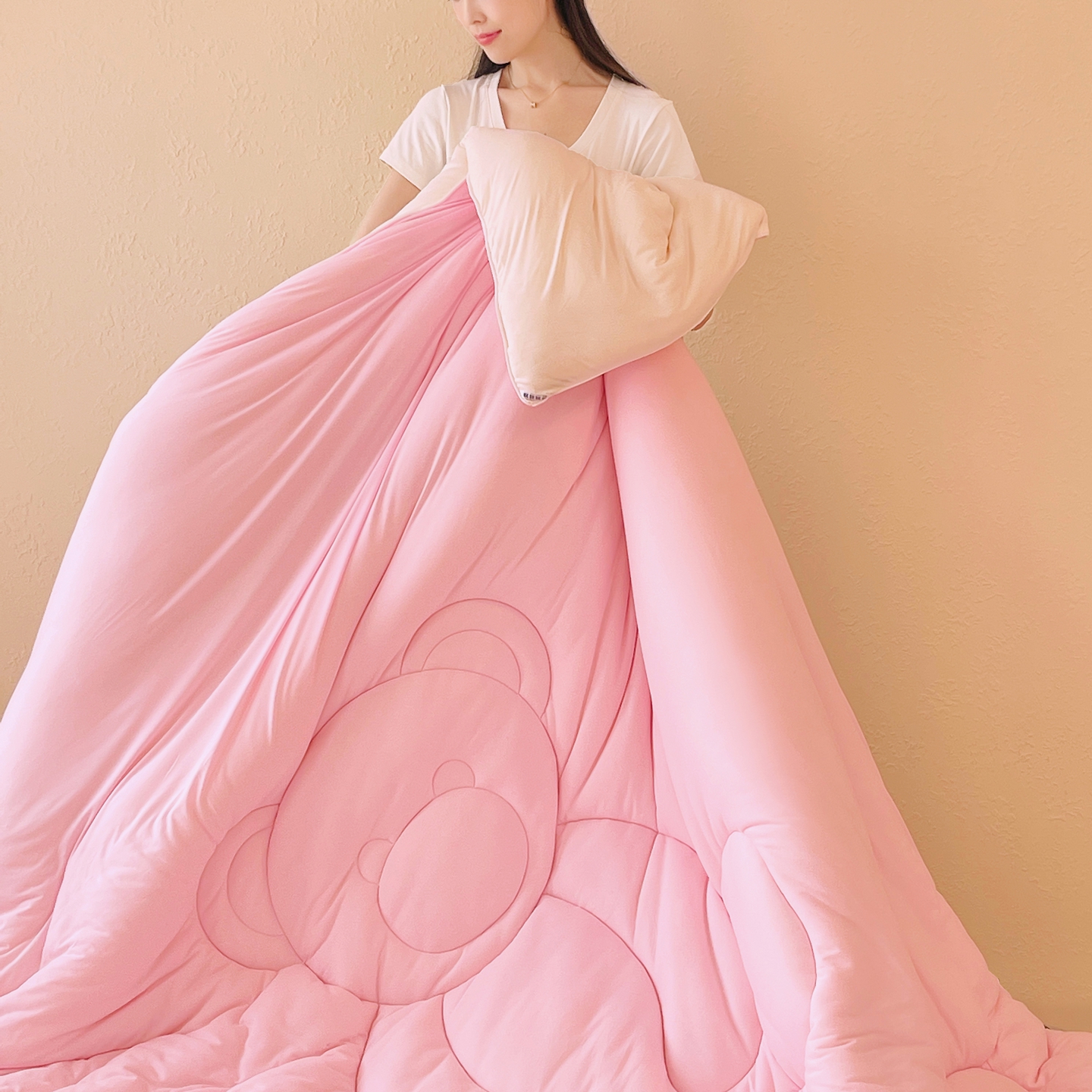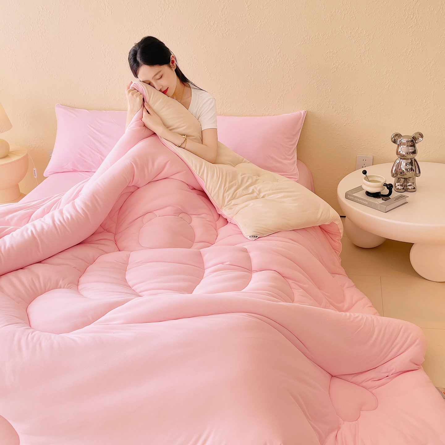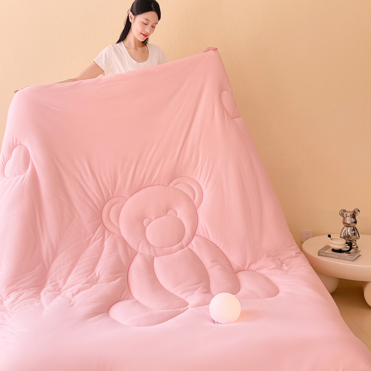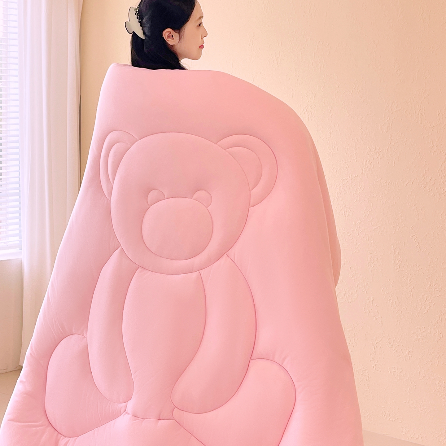 商品名称:色鬼布艺高端家居主号 2025新款针织云朵冬被软萌小熊被 粉色