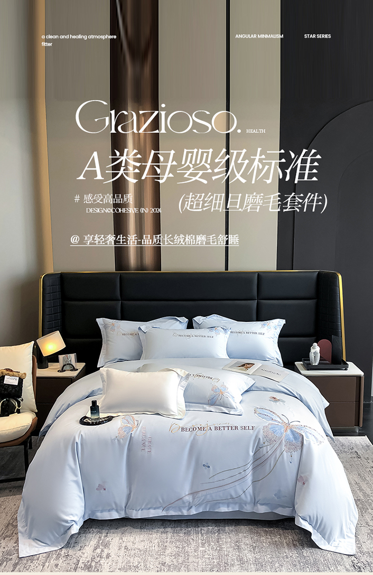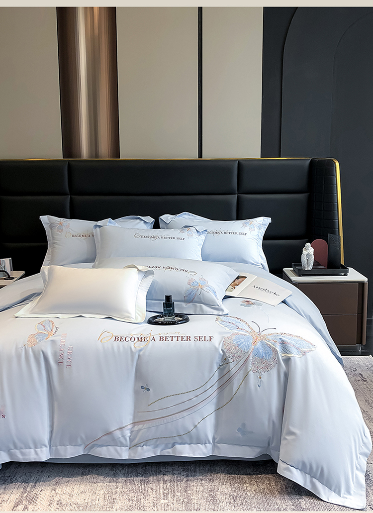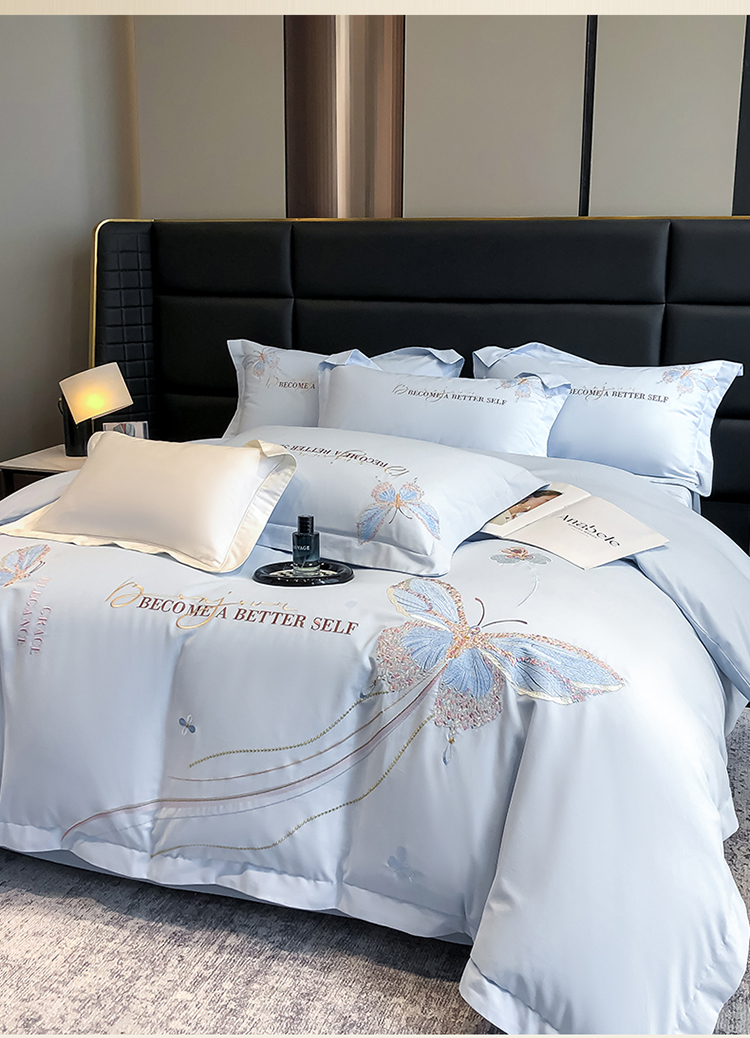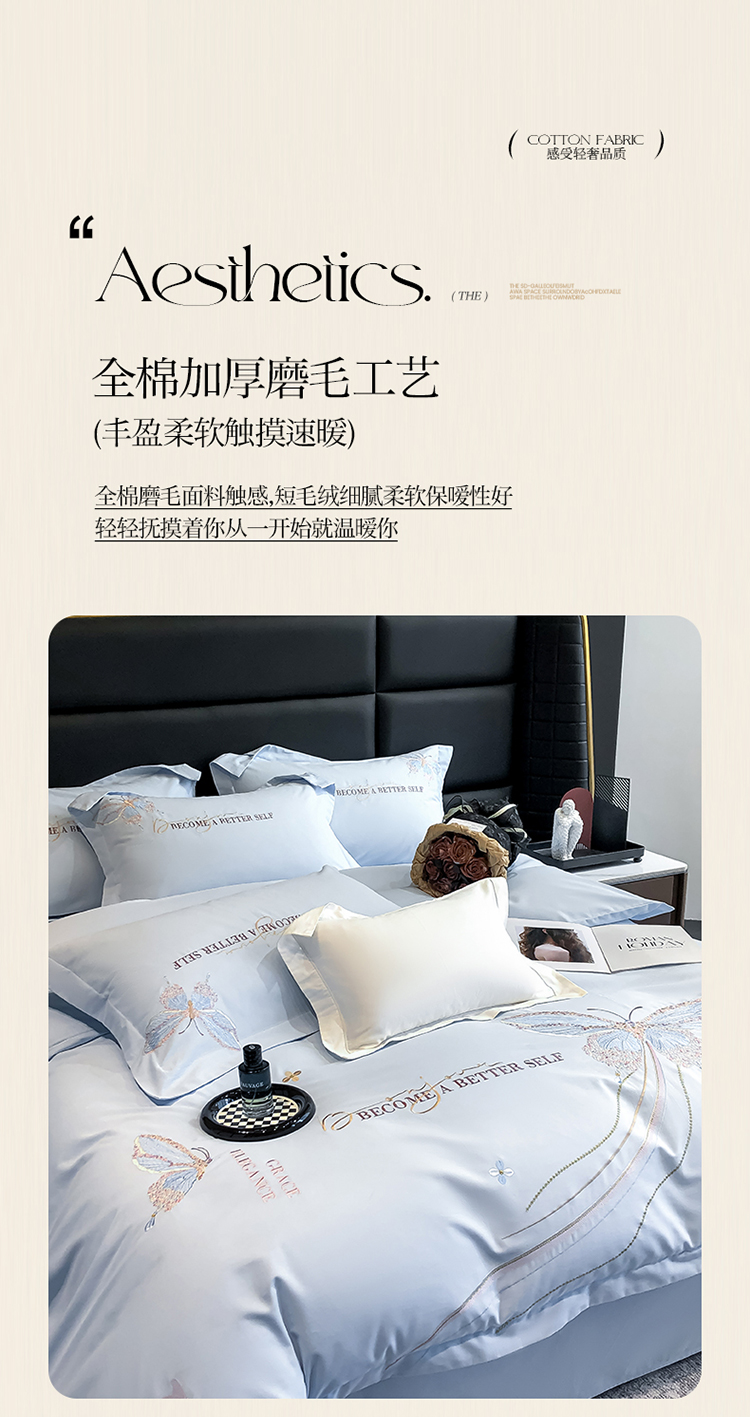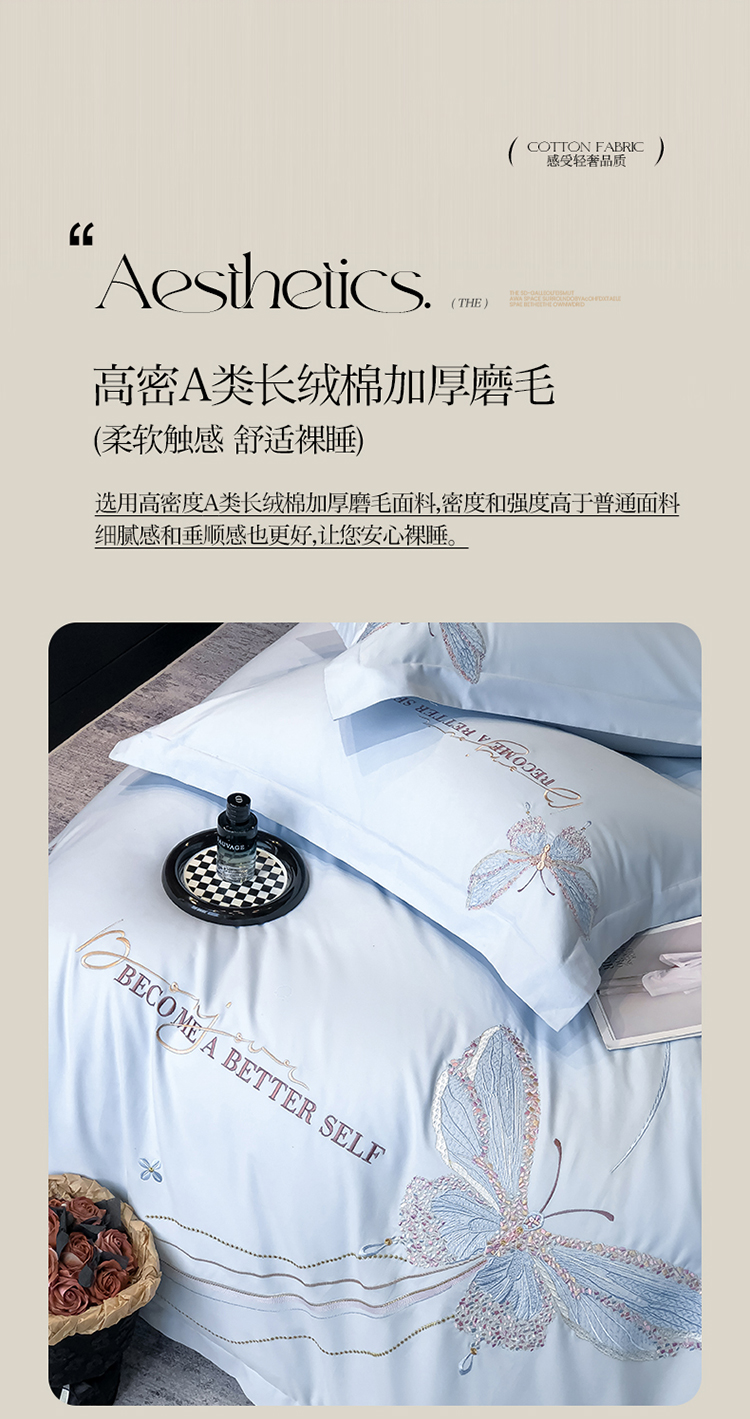 当前位置: 91家纺网 > 商品网购 > 床品套件 > 四件套 > 长绒棉四件套 > 高档礼盒装超细旦超柔长绒棉磨毛刺绣四件套秋冬加厚100%纯棉全棉床品 绮蝶-祖玛蓝-A类超细旦长绒棉磨毛