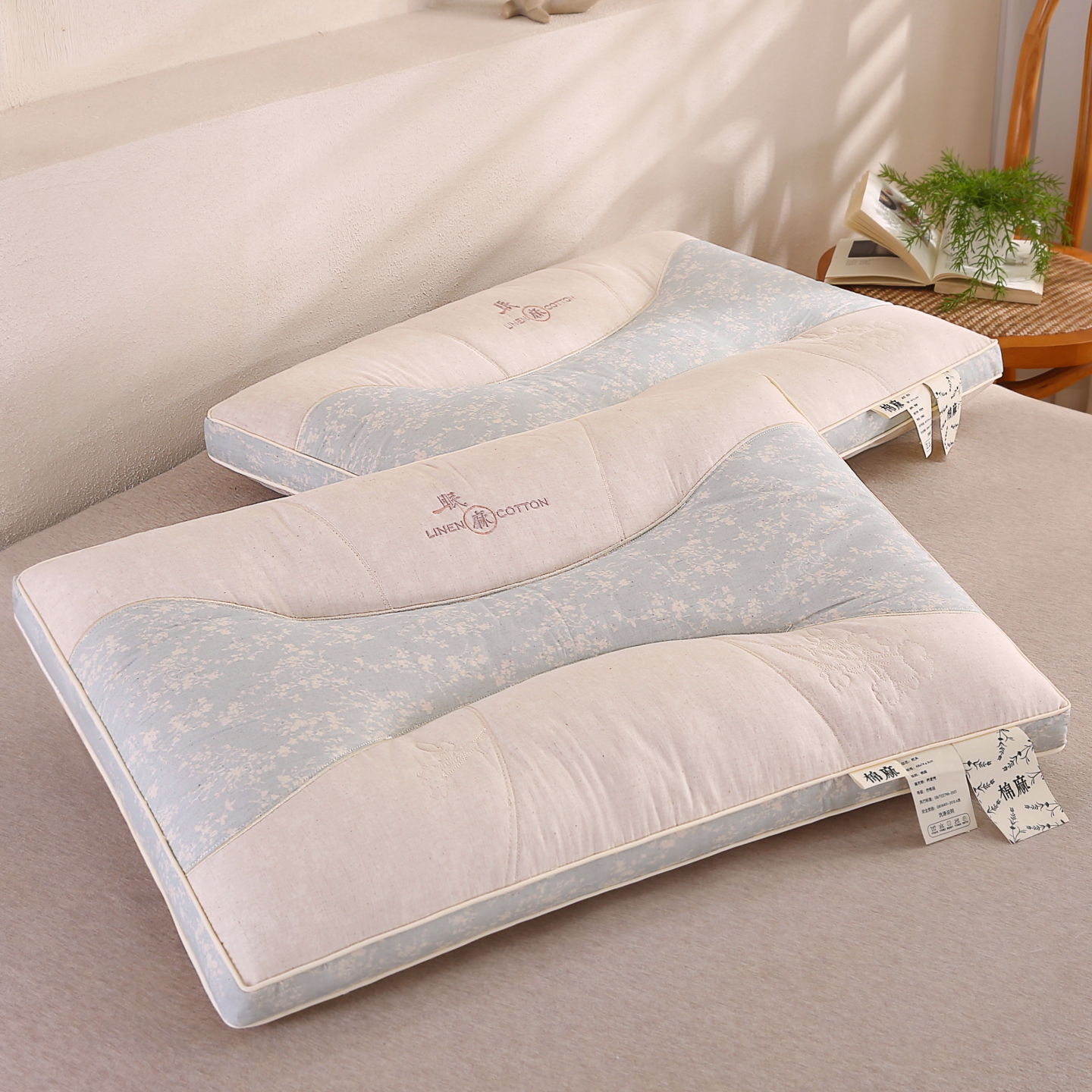 商品名称:鼎晟纺 2025新款国潮棉麻秋冬不上火枕头学生成人枕芯 天青色
