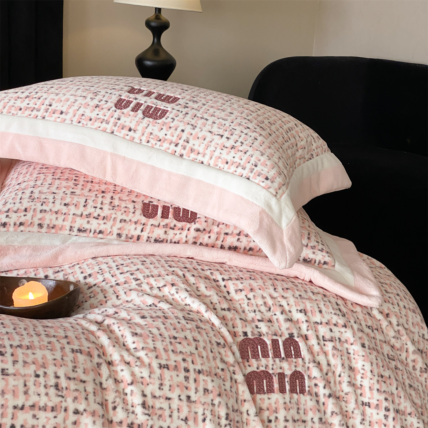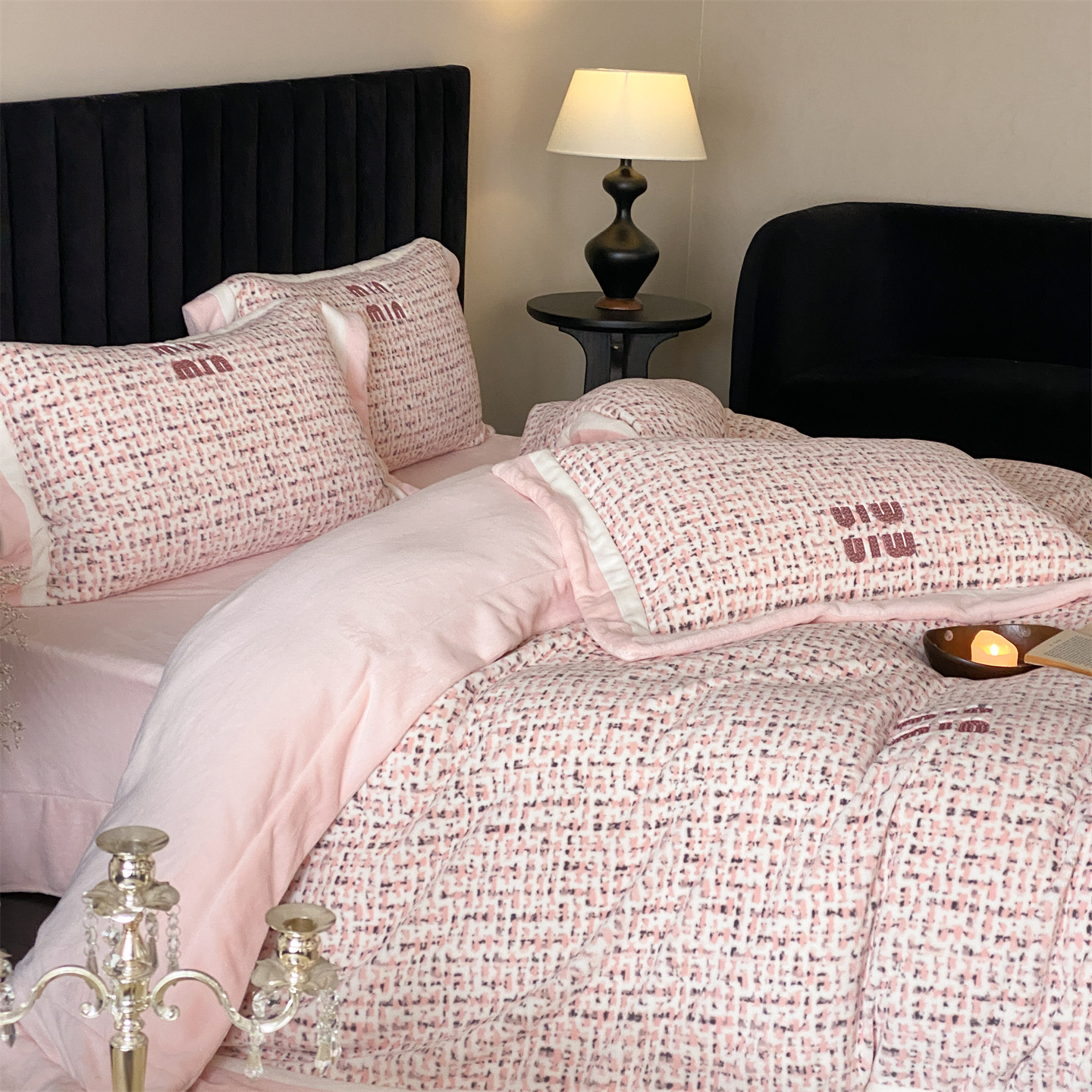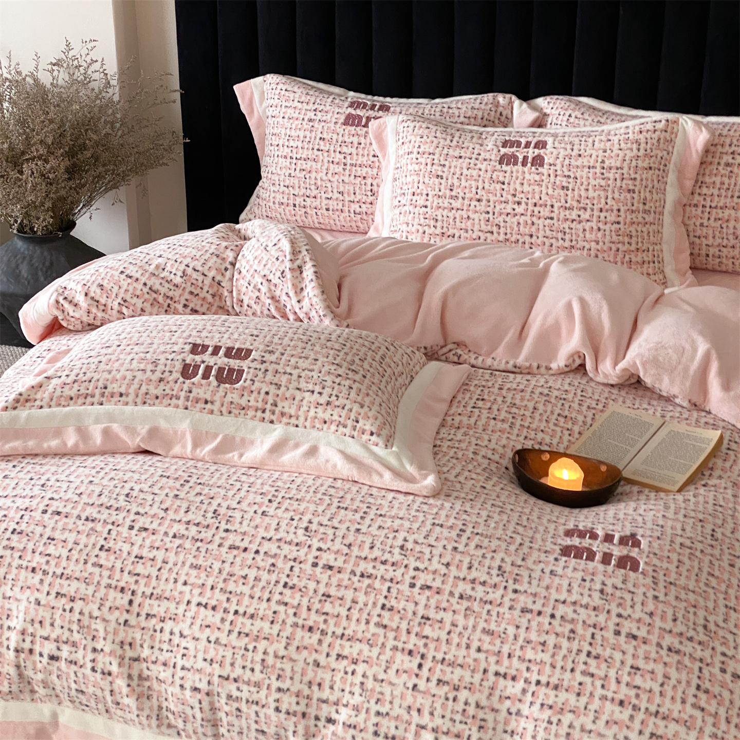 (总)馨蕊 2025新款意大利进口煦暖绒拼角工艺秋冬轻奢煦暖绒系列四件套-绒澜心 会员-10【券后控价338/358】,绒澜心-蔷薇粉,绒澜心-温莎红