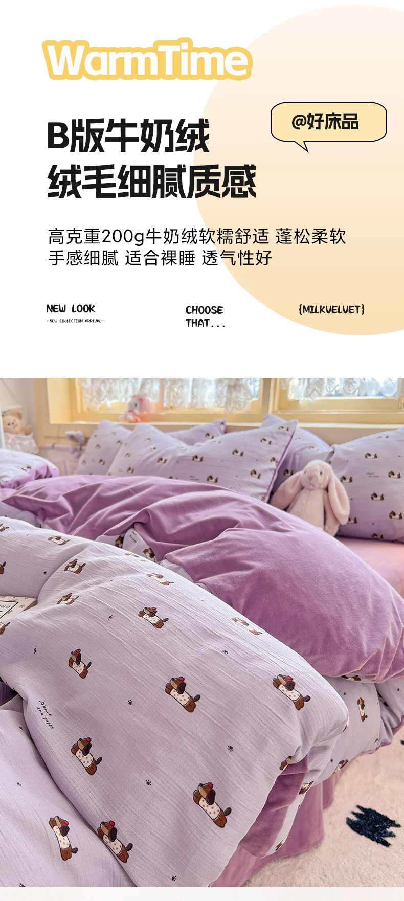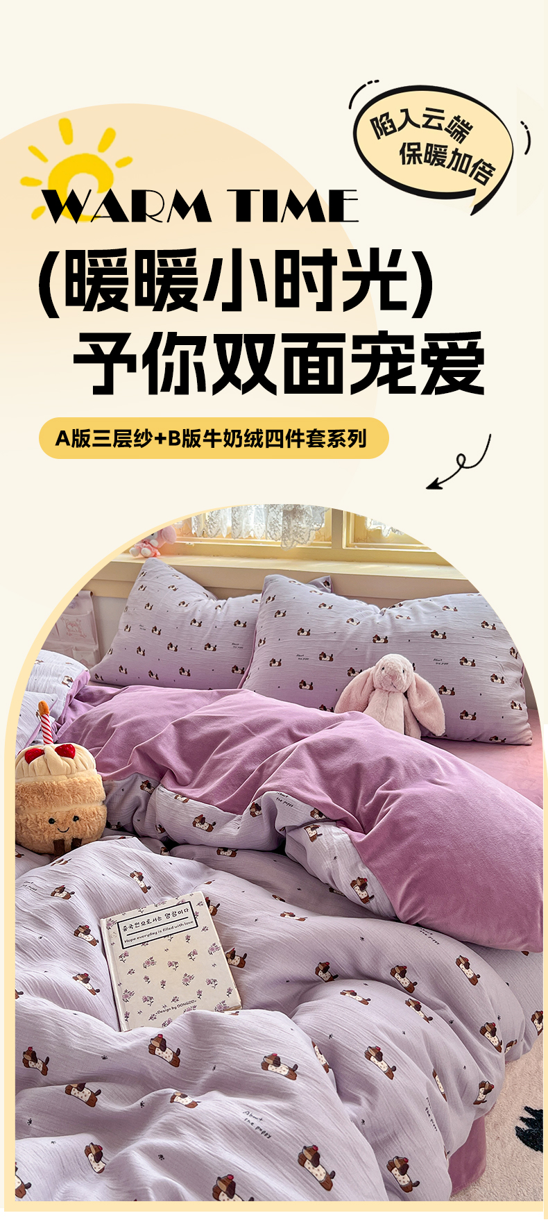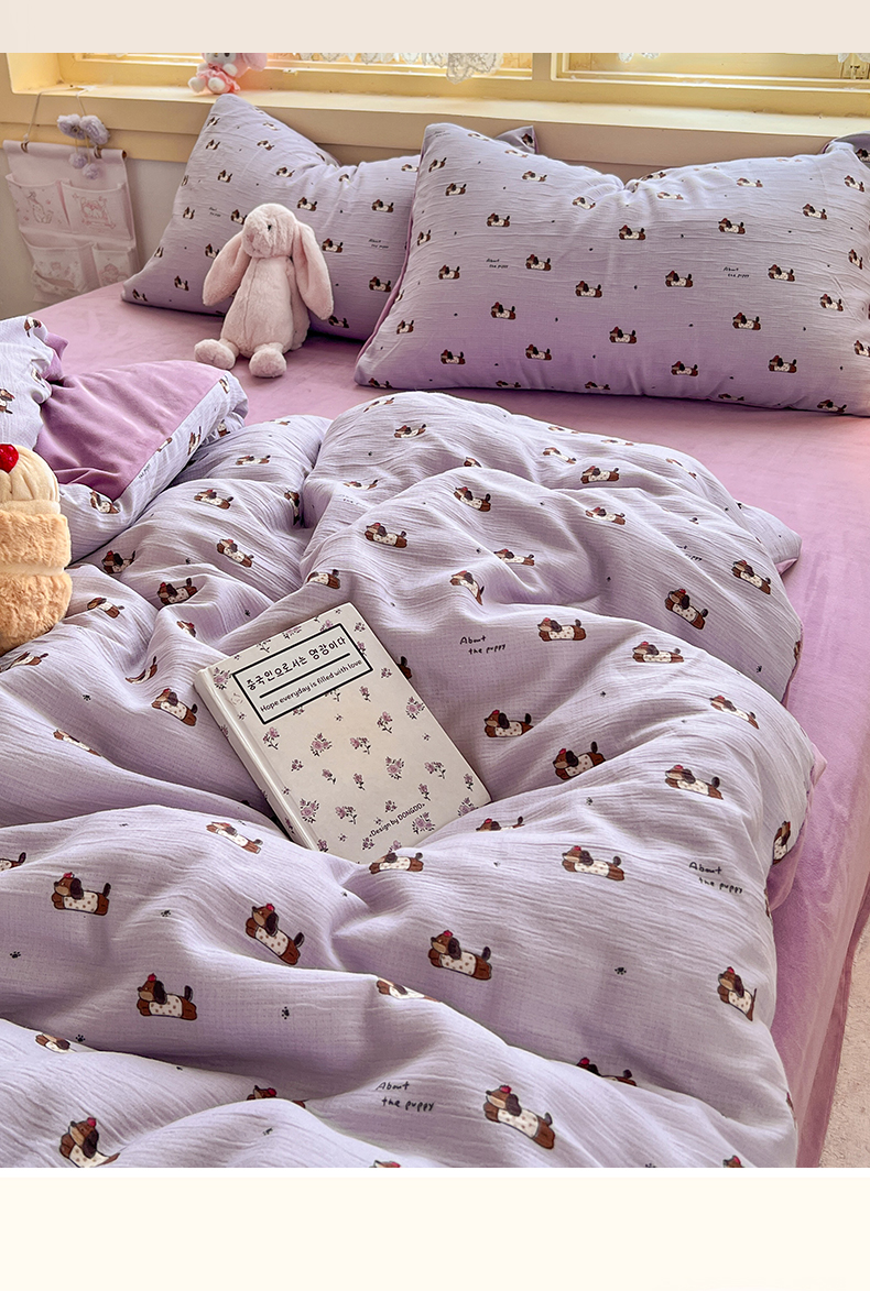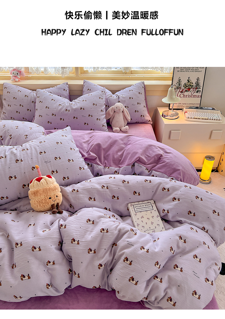 瑞钰 2025新款A版三层纱B版牛奶绒四件套系列 葡萄腊肠狗