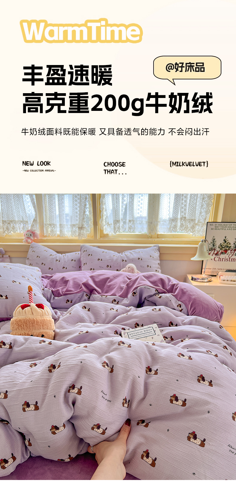 (总)瑞钰 2025新款亲肤保暖牛奶绒四件套,菲菲公主,红格子小美,蓝波点小美,绵绵星星,小木马,小新同学,长帽小狗