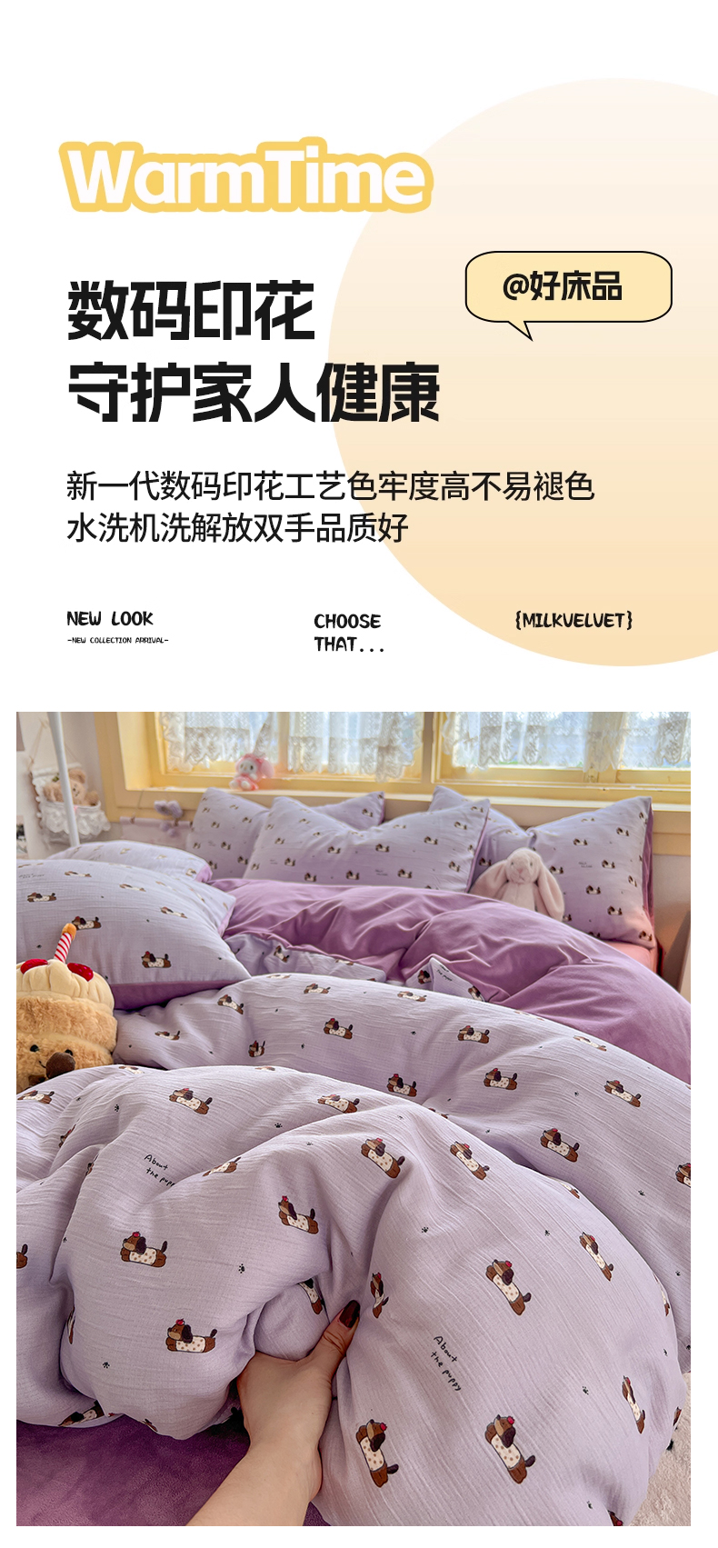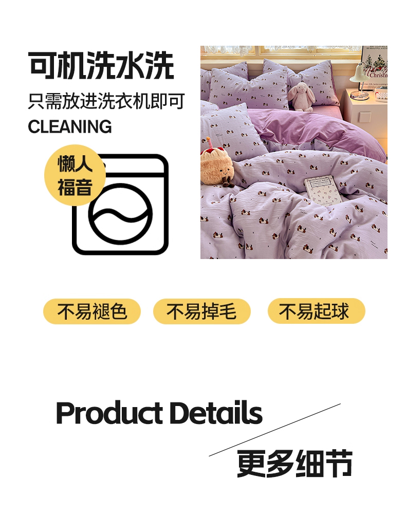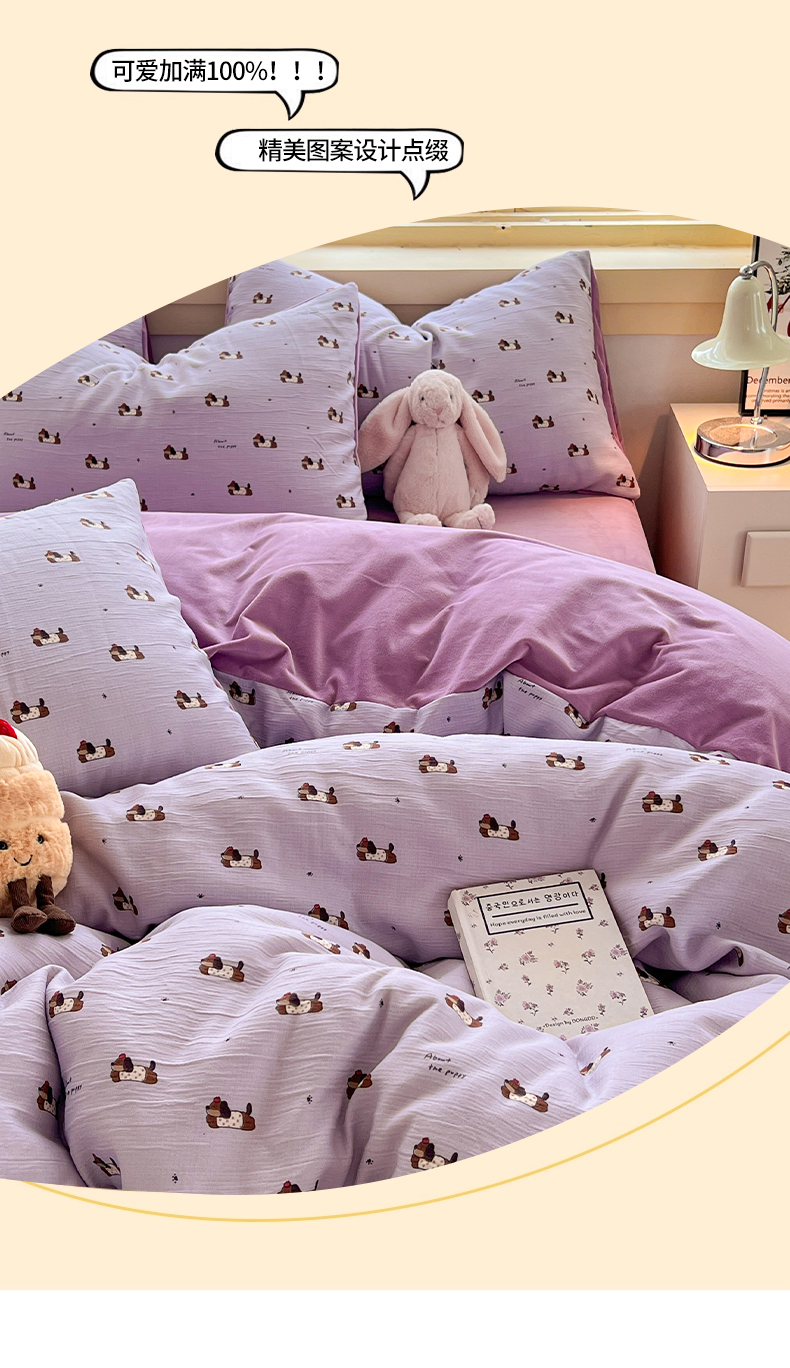 商品名称:瑞钰 2025新款A版三层纱B版牛奶绒四件套系列 葡萄腊肠狗