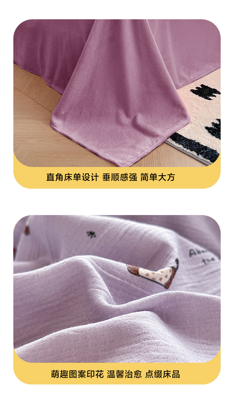 (总)瑞钰 2025新款A版三层纱B版牛奶绒四件套系列,动物团团,粉黛,复古修狗,花丛点点猫,花间兔,碱水结,莫奈-咖,沐风,南瓜派,葡萄腊肠狗,糖豆腊肠狗,小花点点,撄桃蝴蝶,雨爱,紫萱