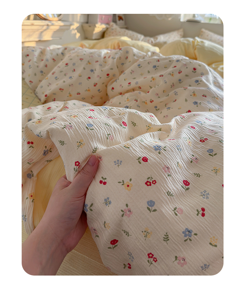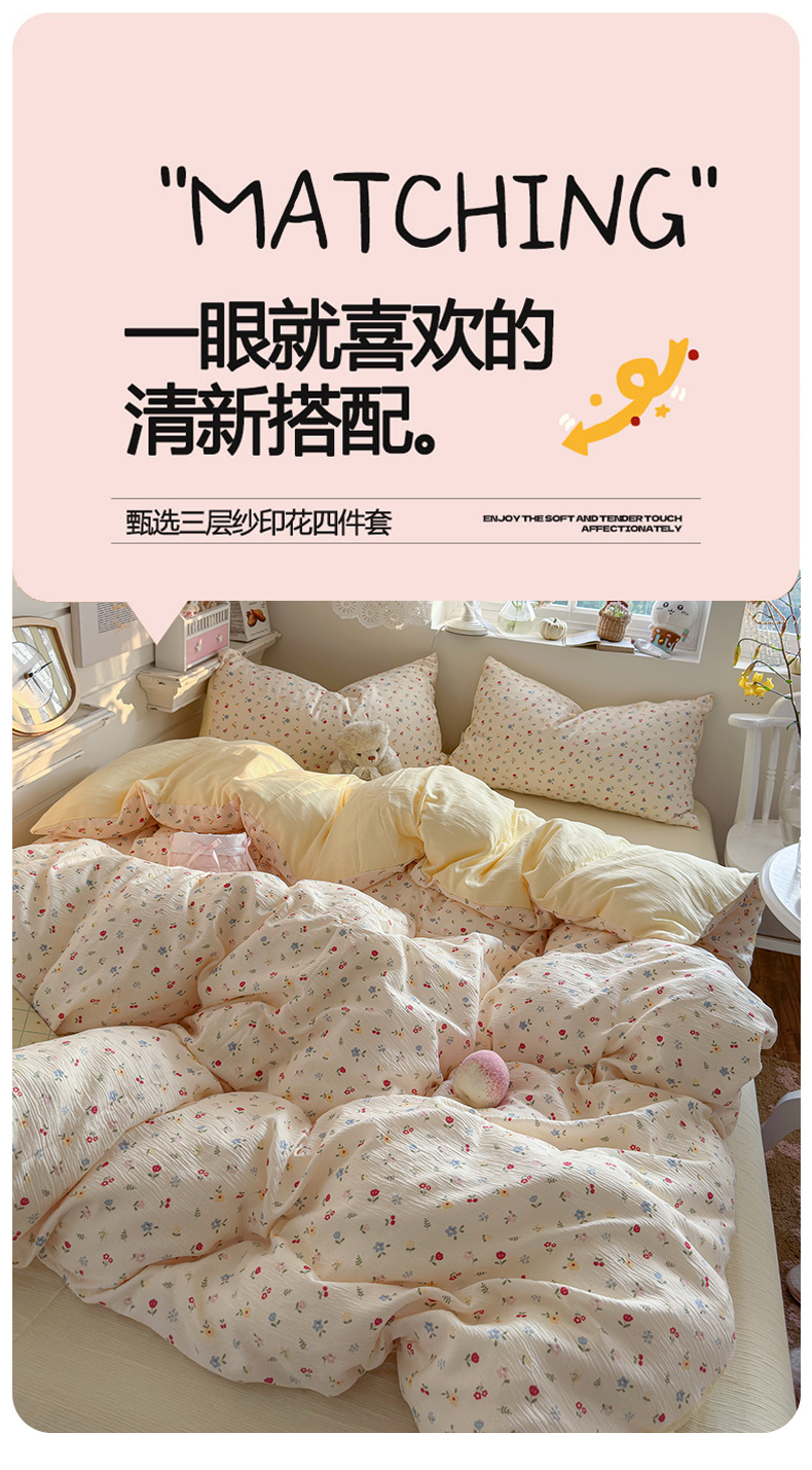 当前位置: 91家纺网 > 商品网购 > 床品套件 > 四件套 > 其它四件套 > 玉海棠家纺 2025新款甄选三层纱印花四件套 小花花