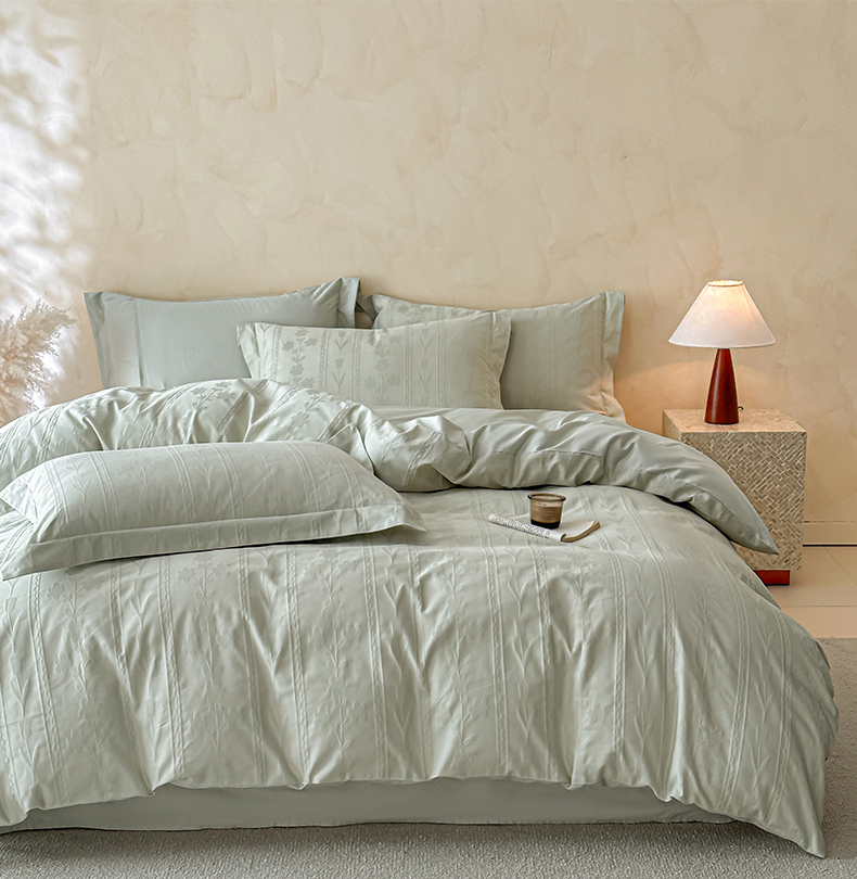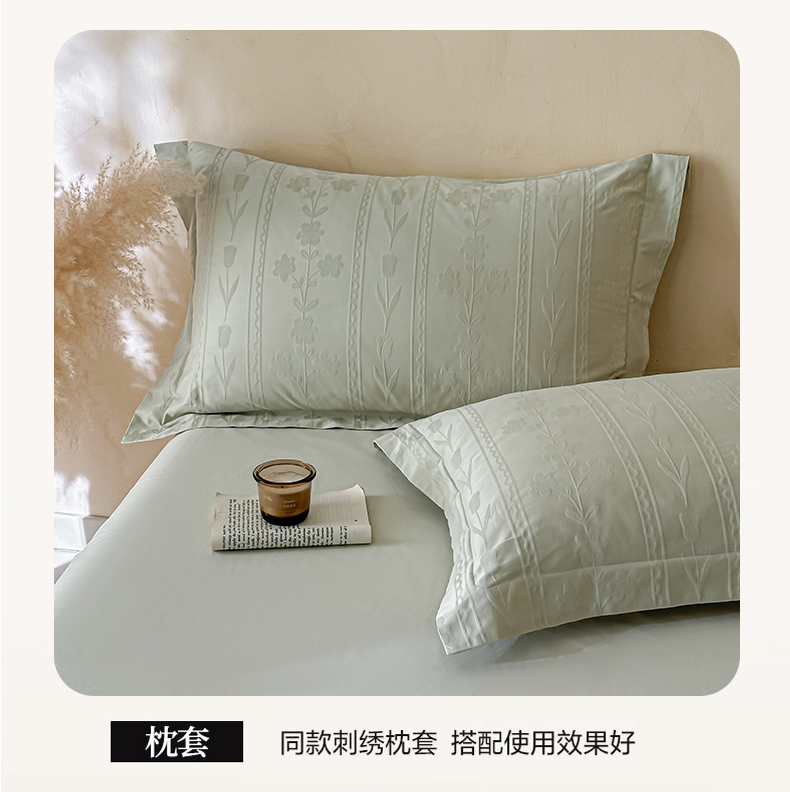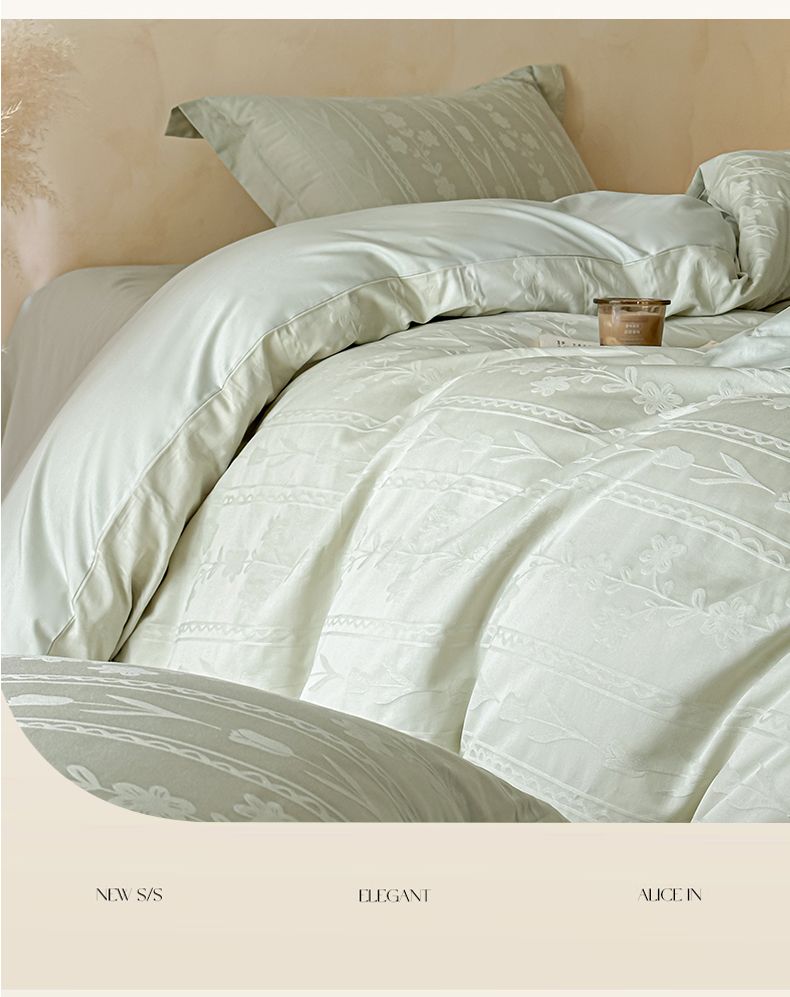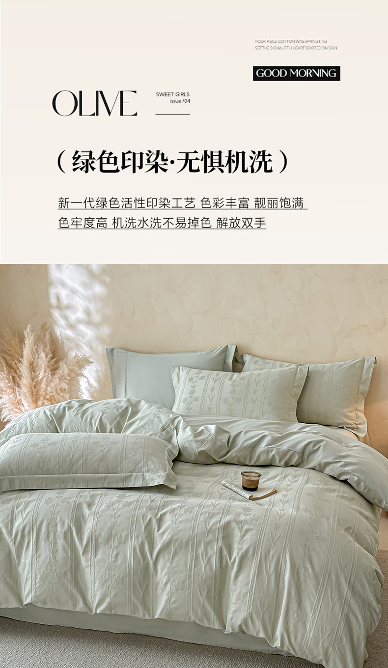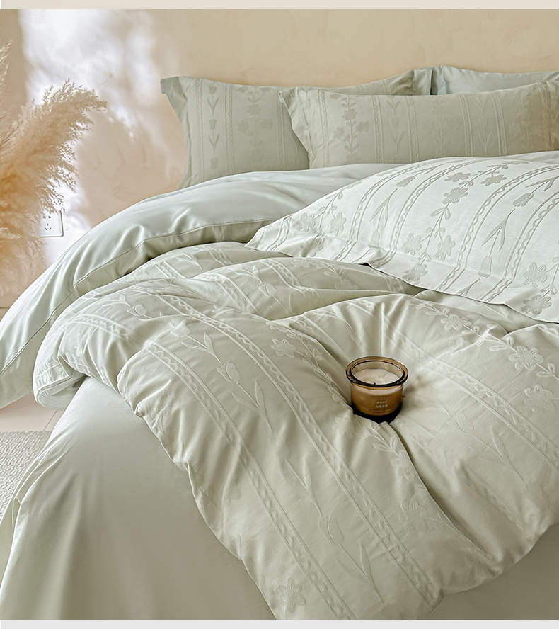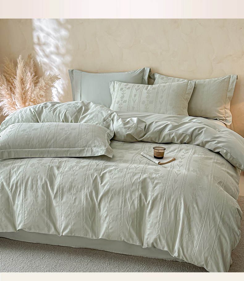 当前位置: 91家纺网 > 商品网购 > 床品套件 > 四件套 > 长绒棉四件套 > 禾时 2026新款春夏全棉长绒棉立体提花四件套-花屿 清新绿