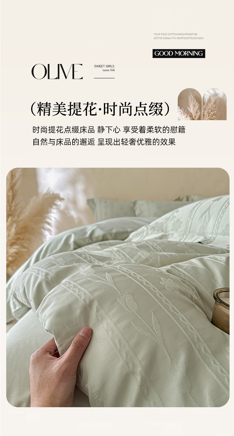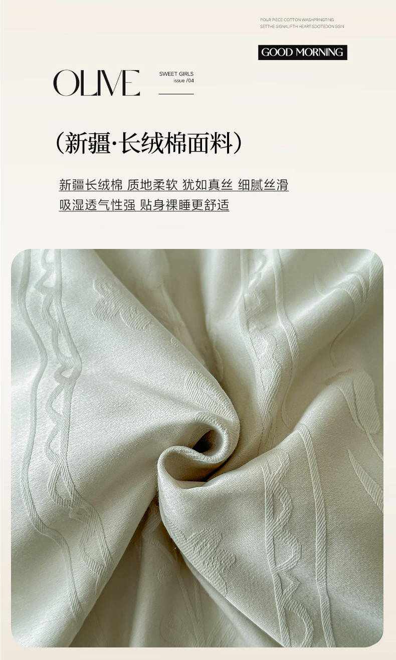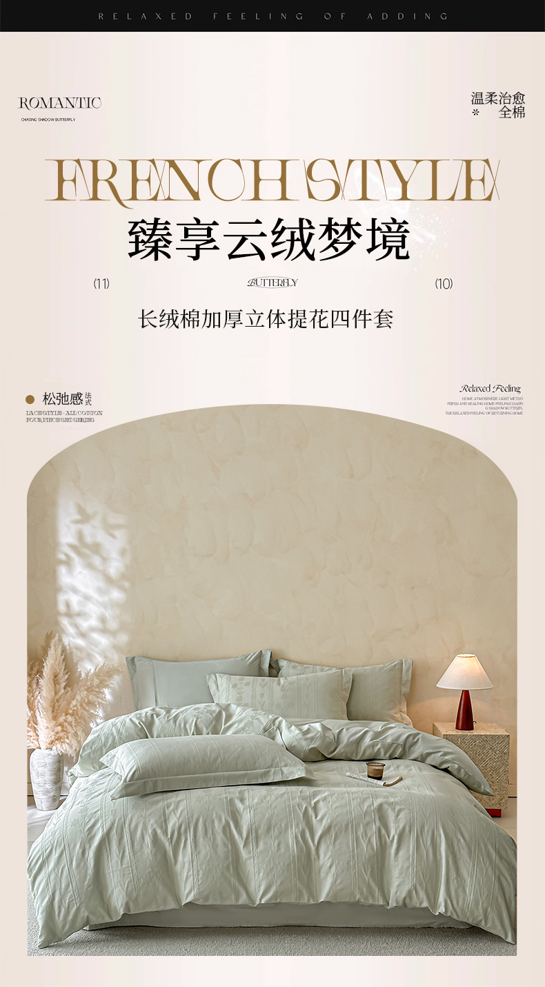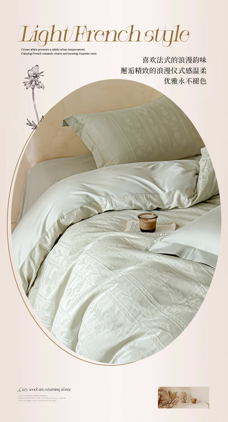 当前位置: 91家纺网 > 商品网购 > 床品套件 > 四件套 > 长绒棉四件套 > 禾时 2026新款春夏全棉长绒棉立体提花四件套-花屿 清新绿