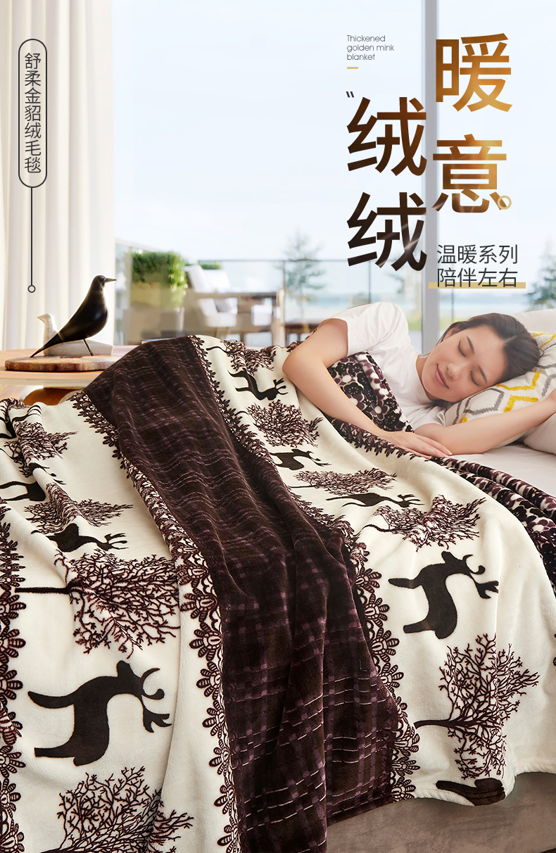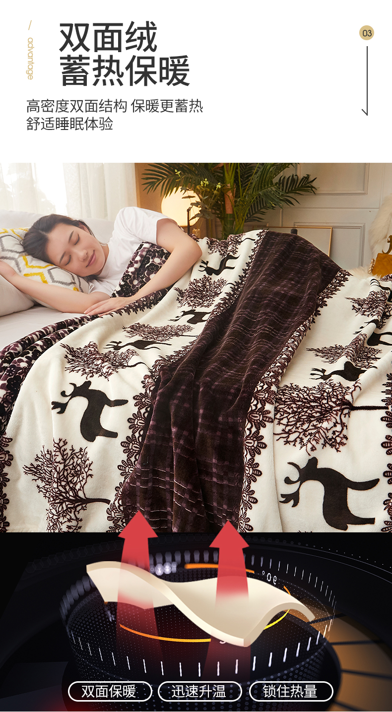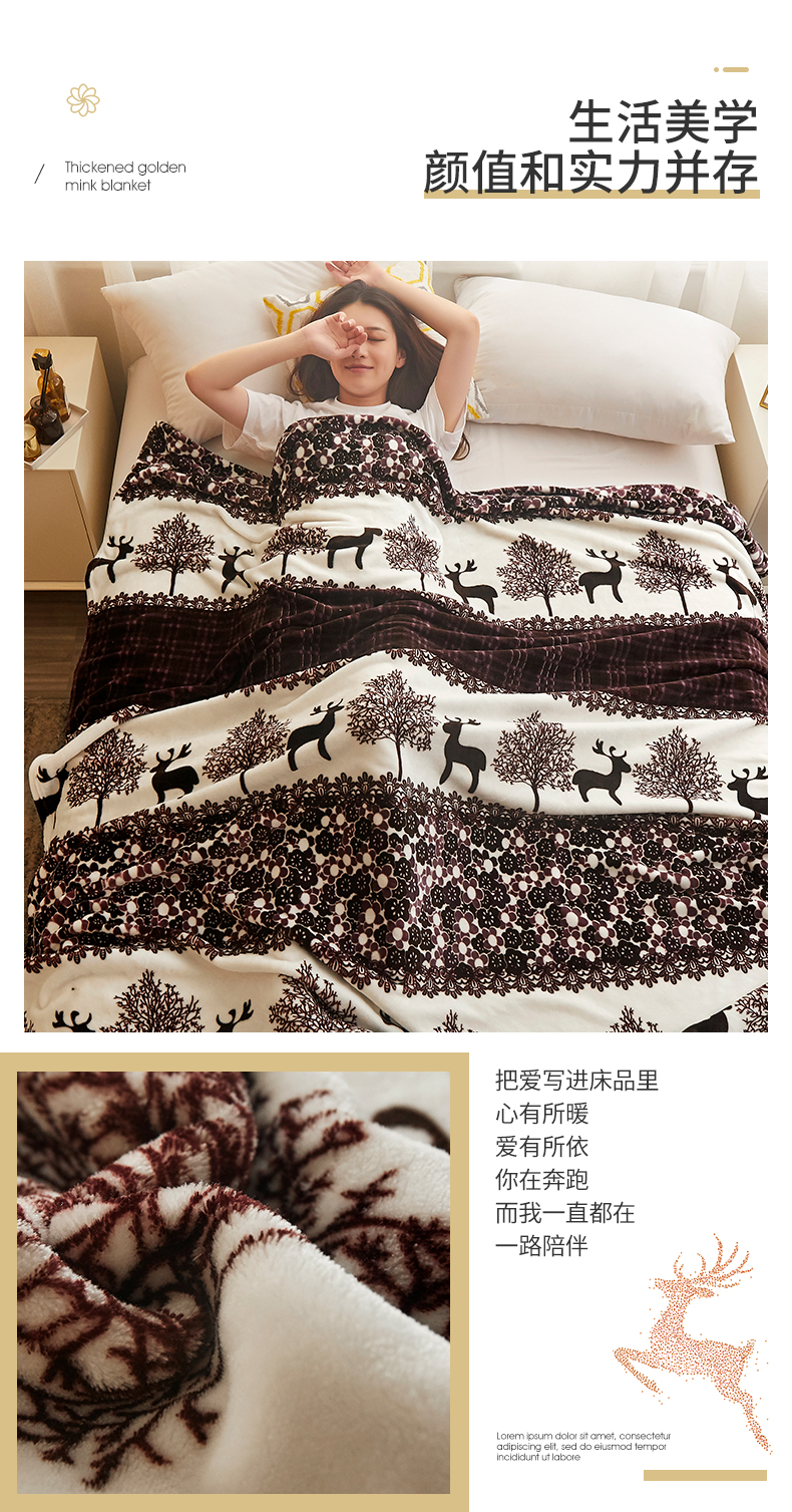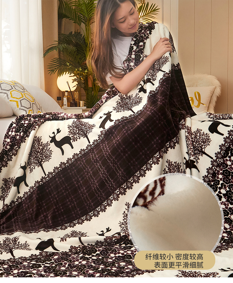 益利多 2026新款160克法莱绒毛毯水晶绒外贸跨境盖毯珊瑚绒可单个压缩 麋鹿森林