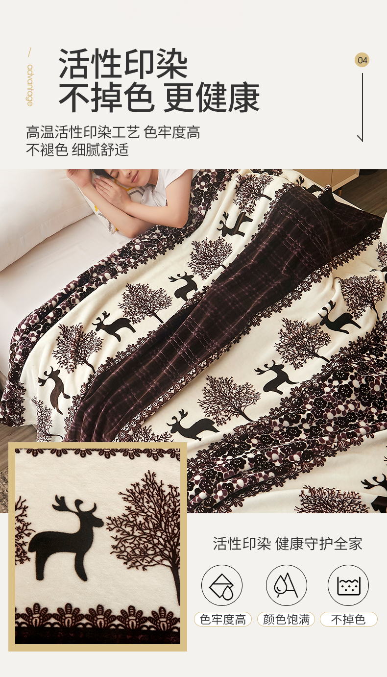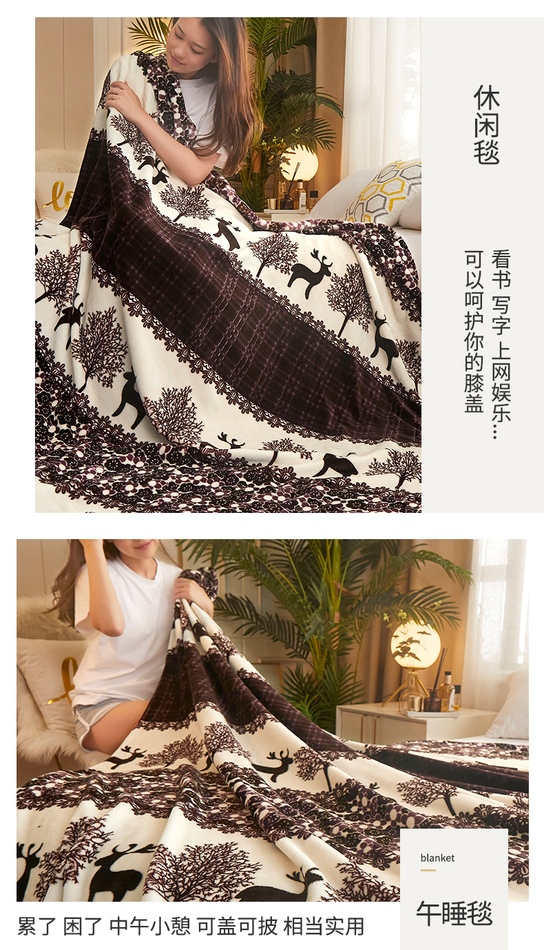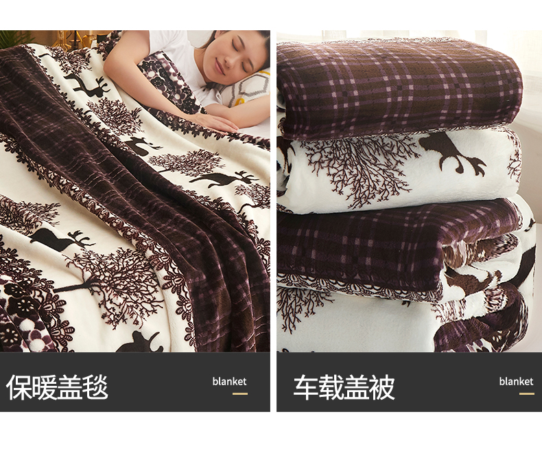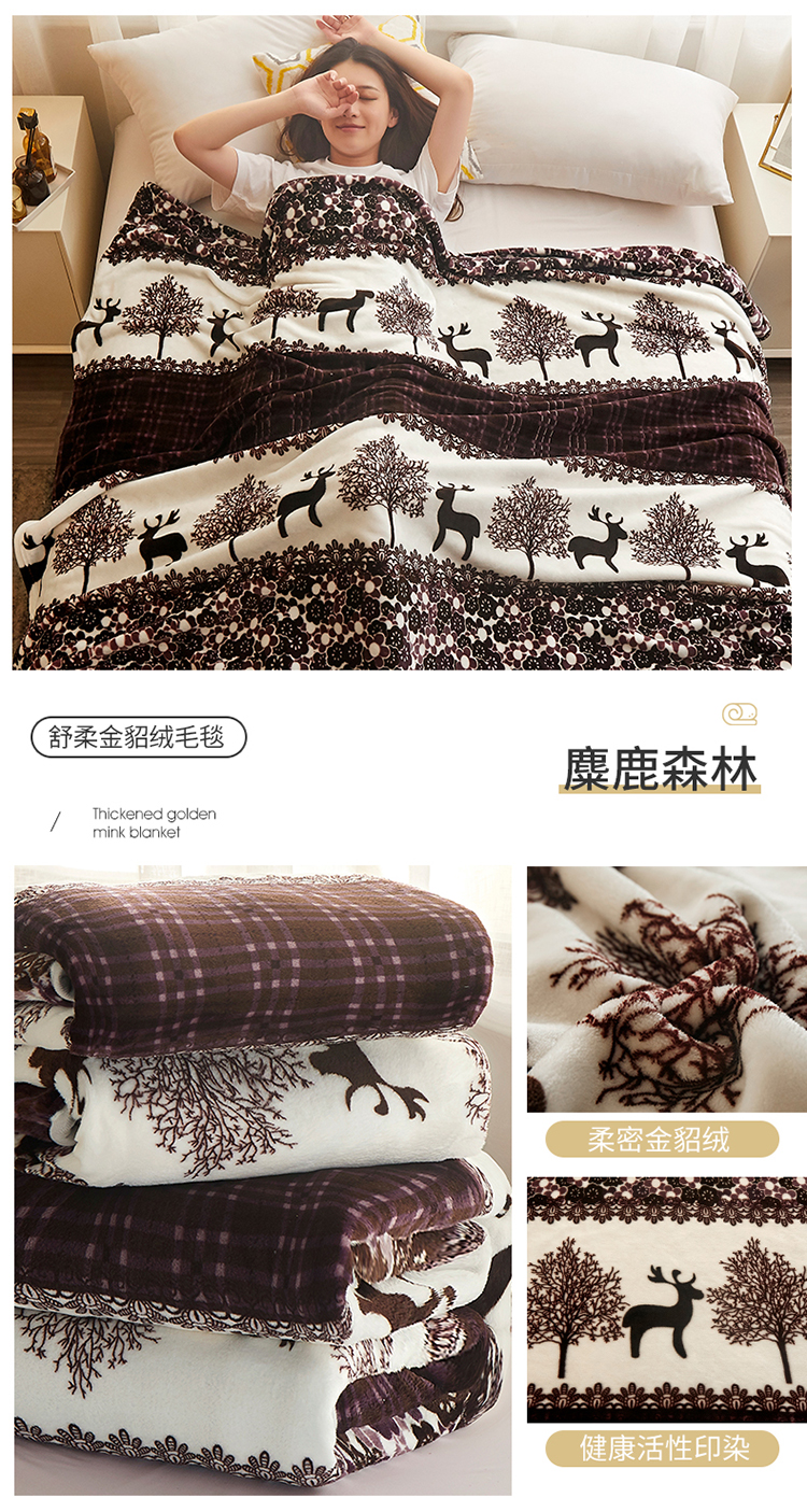 商品名称:益利多 2026新款160克法莱绒毛毯水晶绒外贸跨境盖毯珊瑚绒可单个压缩 麋鹿森林