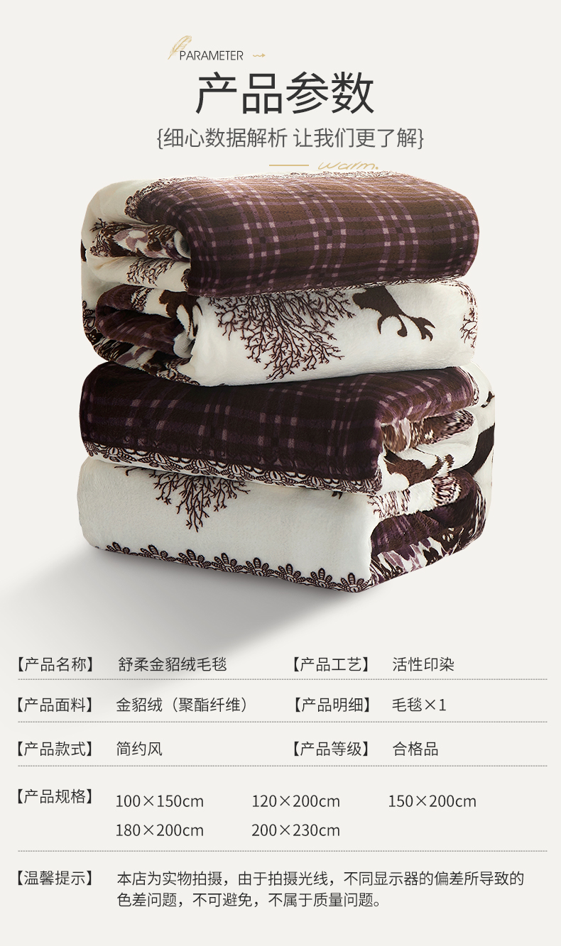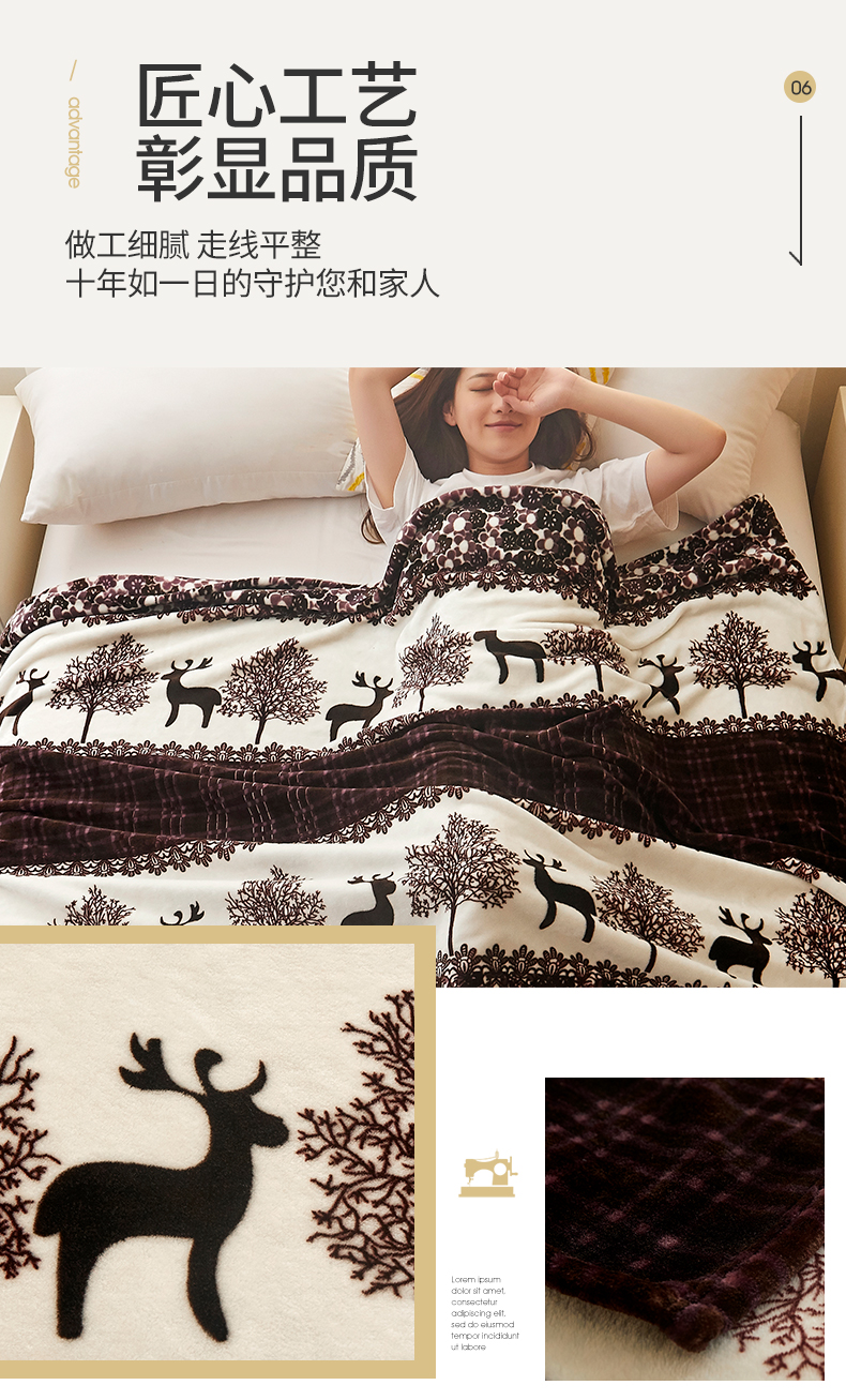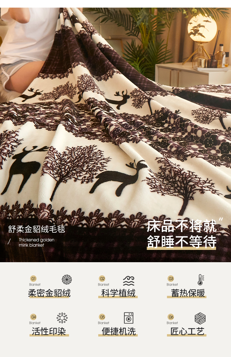 商品名称:益利多 2026新款160克法莱绒毛毯水晶绒外贸跨境盖毯珊瑚绒可单个压缩 麋鹿森林