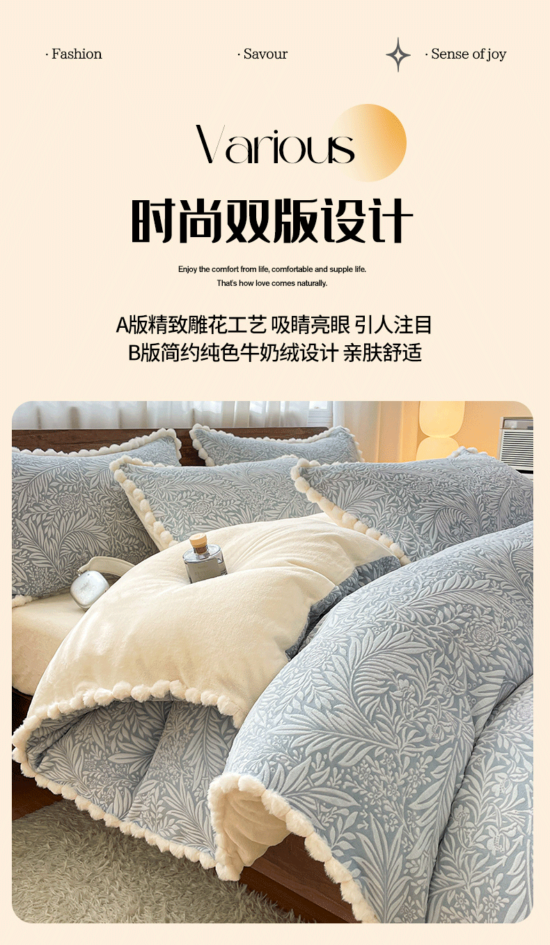 (总)羚羊语家纺 2025新款浮雕绒轻法式牛奶绒四件套雕花绒复古ins风立体着色烂花牛奶绒提花床单三件套-香榭落叶,香榭落叶-花烬影,香榭落叶-小夜曲,香榭落叶-塞纳吻,香榭落叶-巴洛克,香榭落叶-浮梦绘,香榭落叶-洛丽纱