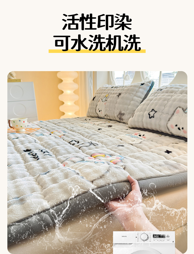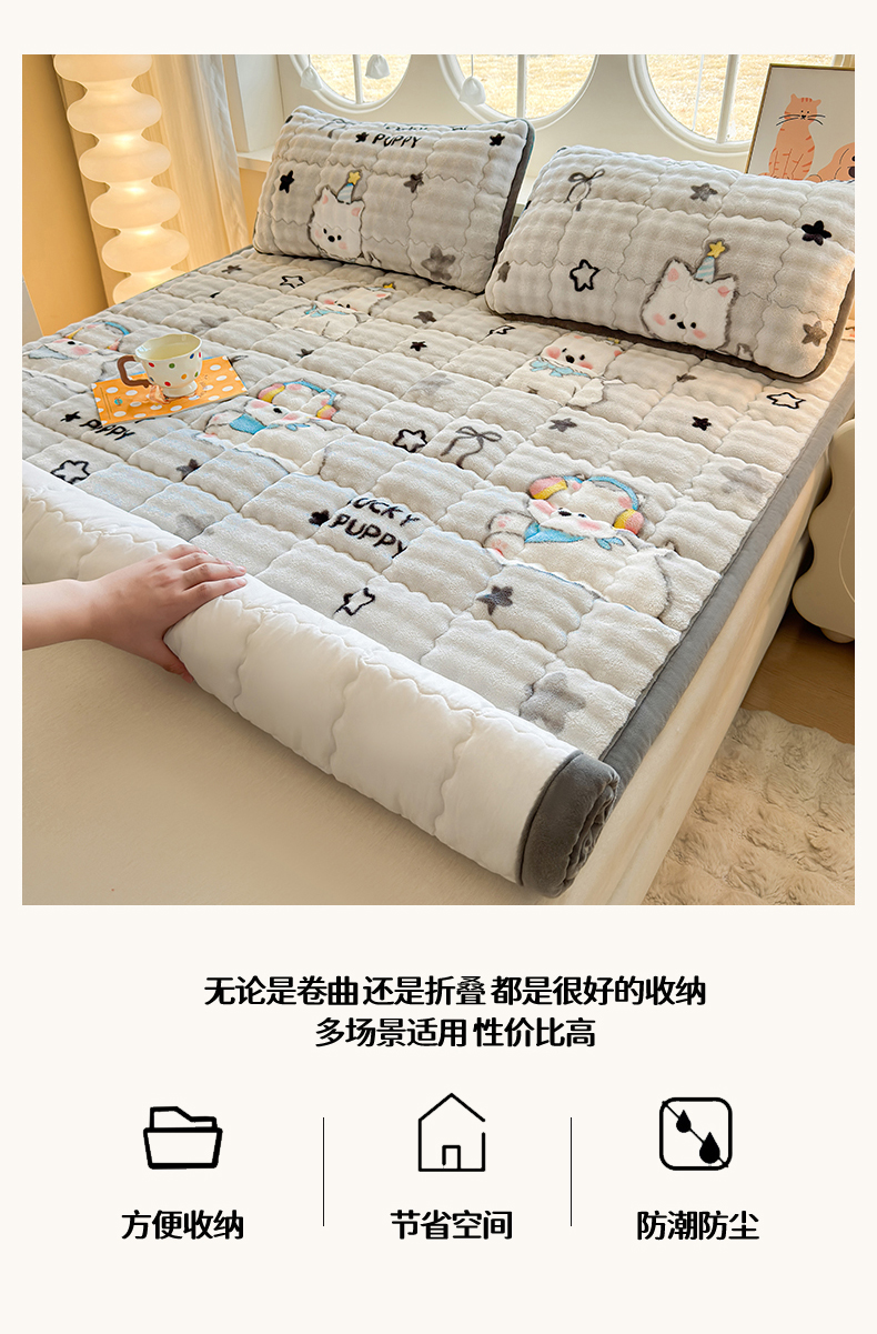 (总)奇丝雅 2025新款A类牛奶绒泡泡绒床褥床垫床盖兔毛绒家用学生宿舍上下铺寝室褥子软垫床护垫夹棉(大床),星星猫咪,爱心咖,繁星,幻影灰,暖绒蓝,趴趴狗,清新绿,柔和蓝,樱桃猫咪,月亮湾