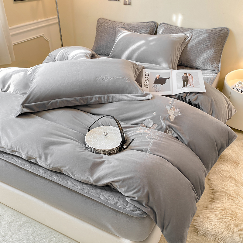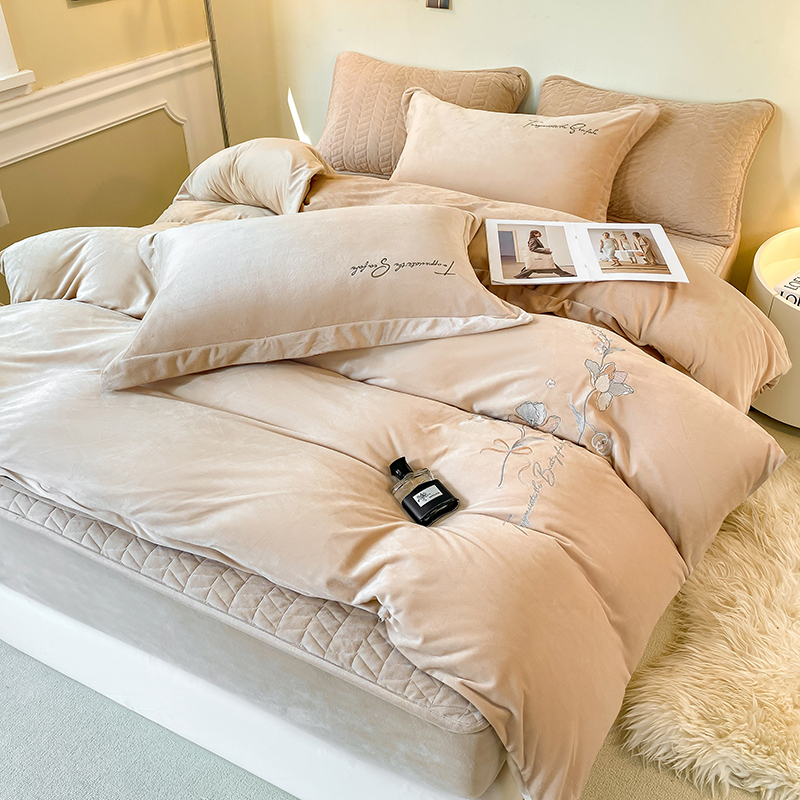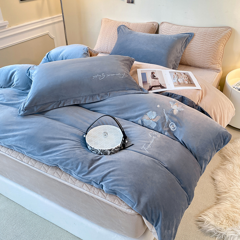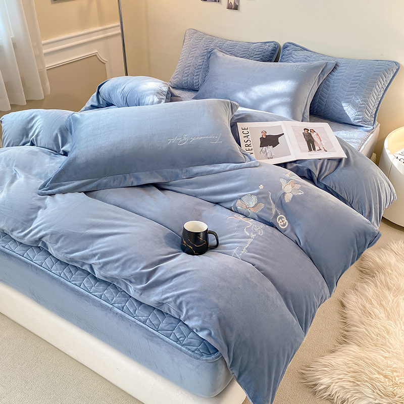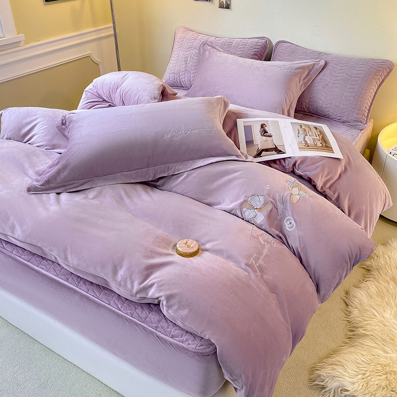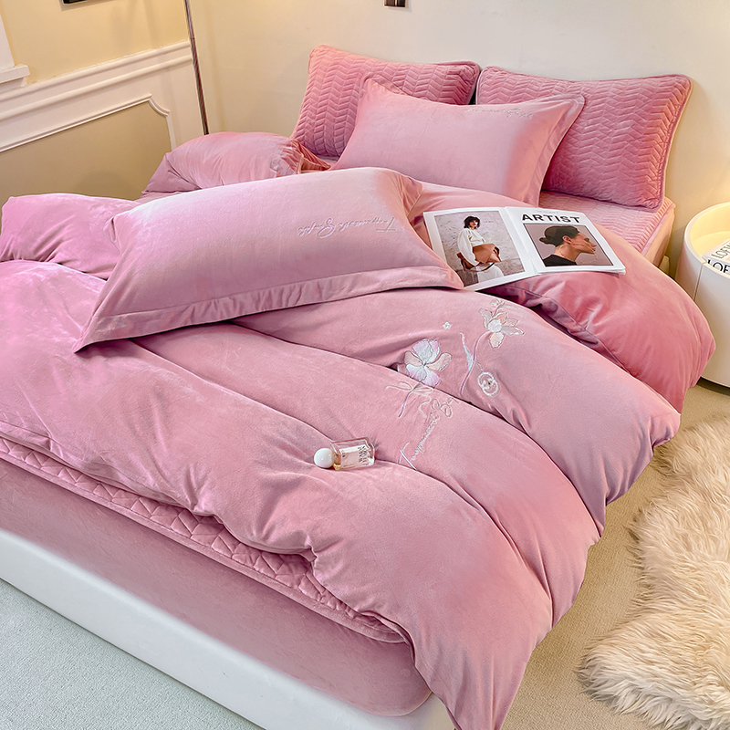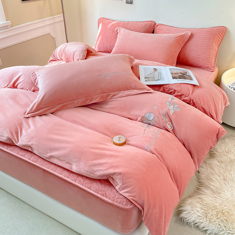 (总)宝宝绒婴儿绒四件套刺绣纯色四件套床单床笠牛奶绒四件套