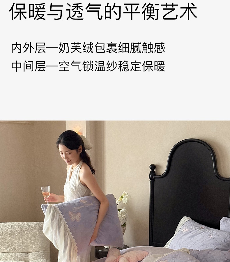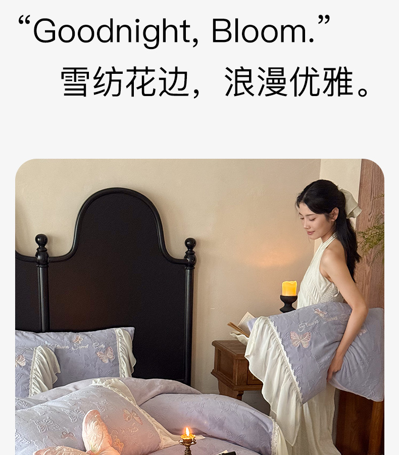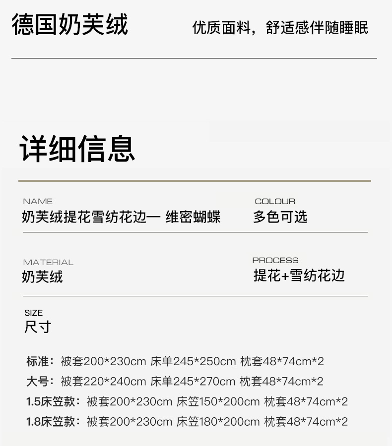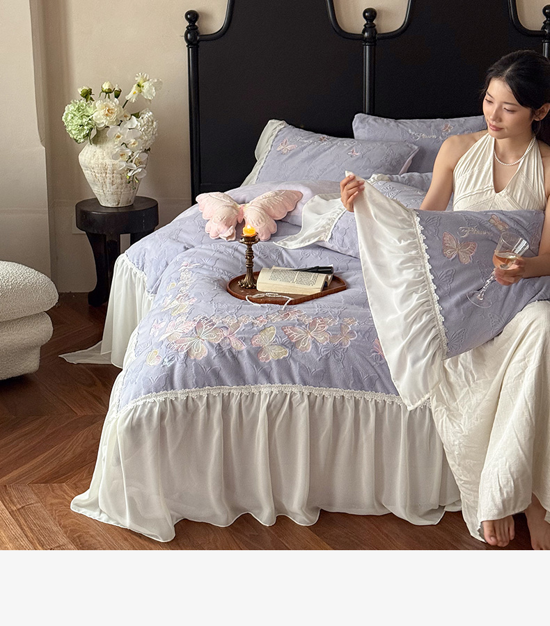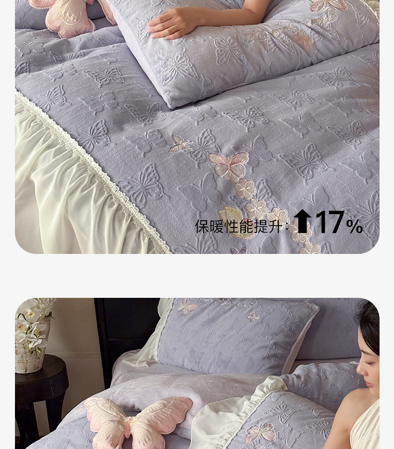 商品名称:卡姿家纺 2025秋冬德国奶芙绒提花雪纺花边— 维密蝴蝶 维密蝴蝶-紫