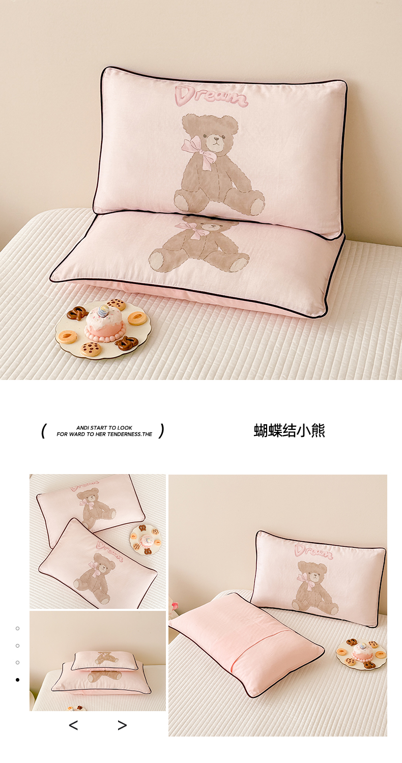 商品名称:呗旺鹿 2025新款A类全棉双层纱单枕套儿童枕头套 蝴蝶结小熊
