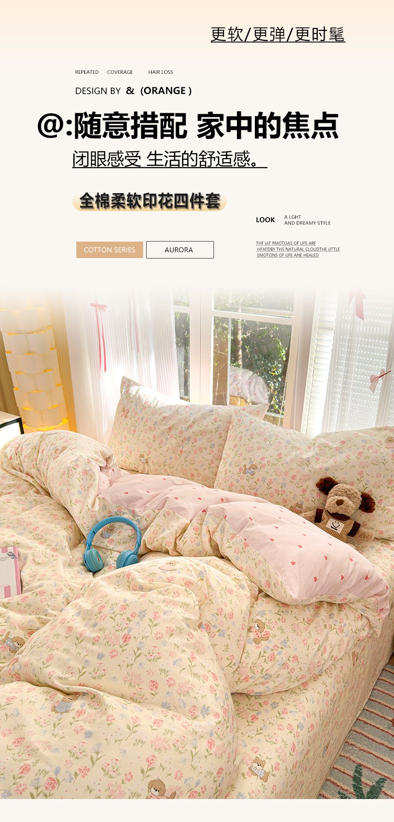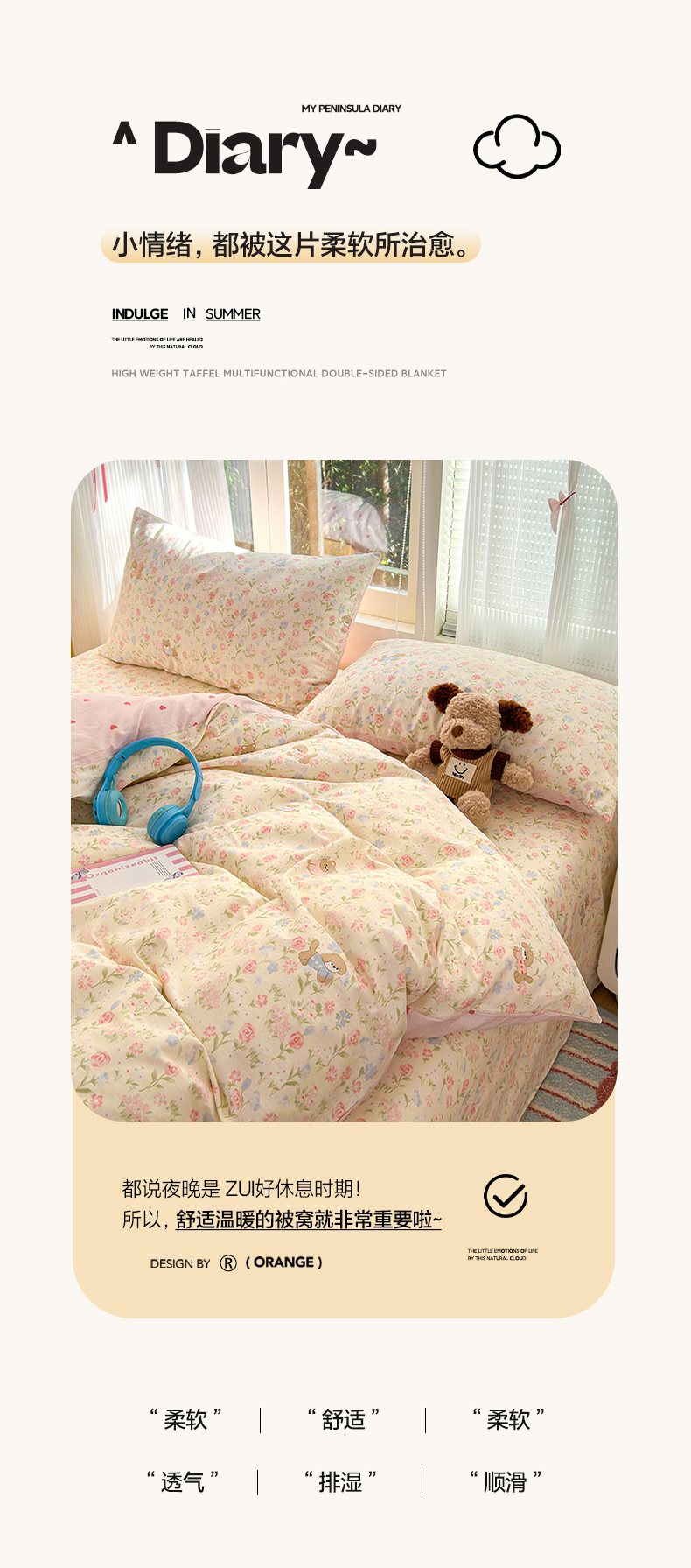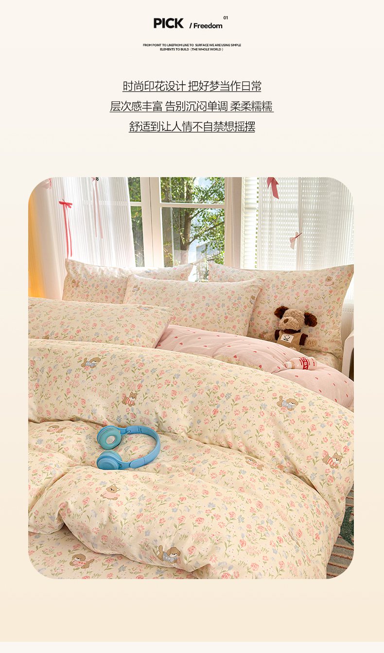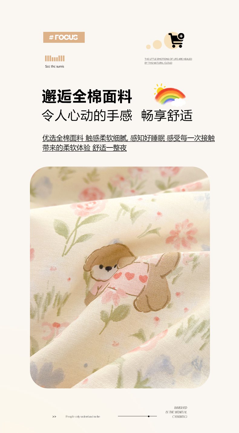 当前位置: 91家纺网 > 商品网购 > 床品套件 > 四件套 > 全棉普通四件套 > 清雅福 2025新款全棉柔软印花系列四件套 甜莓手记-米