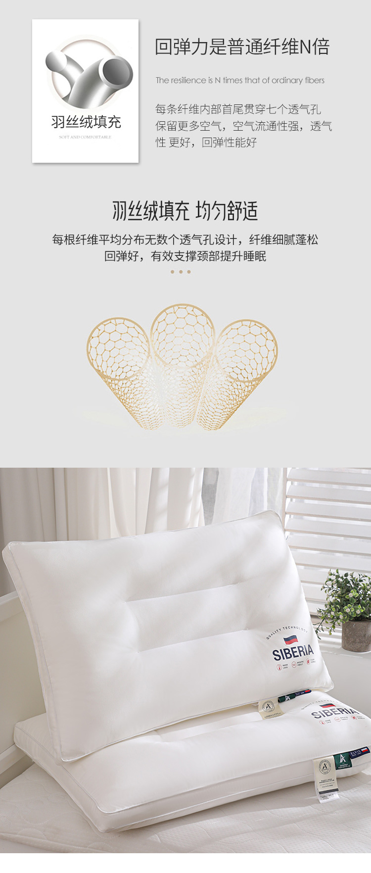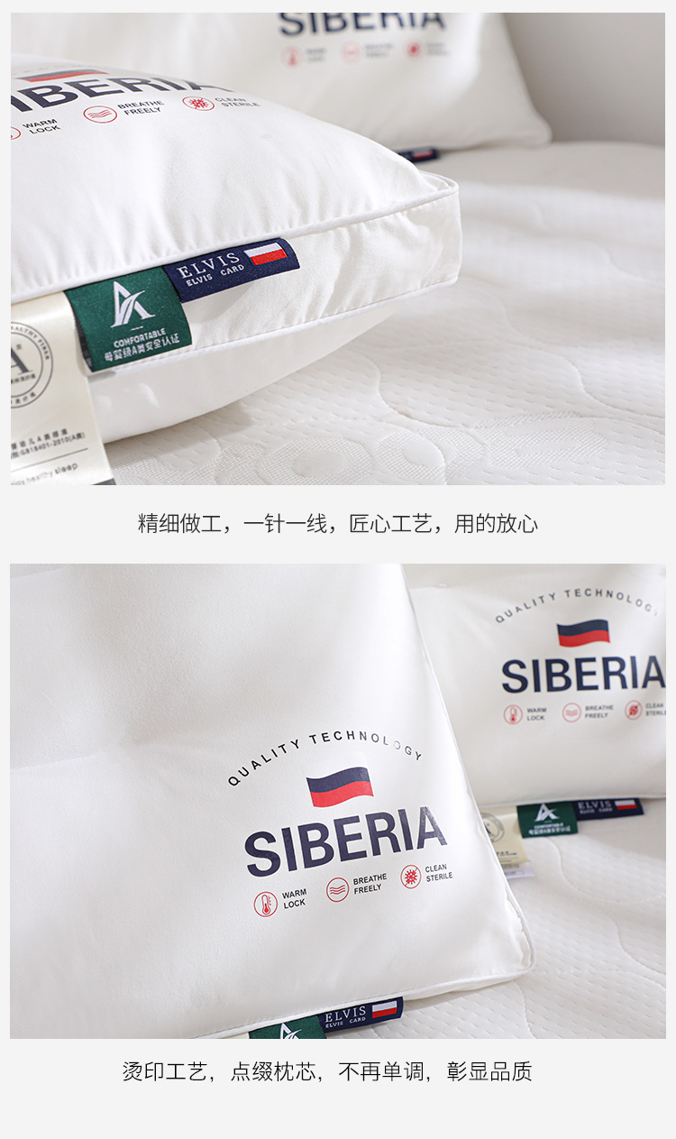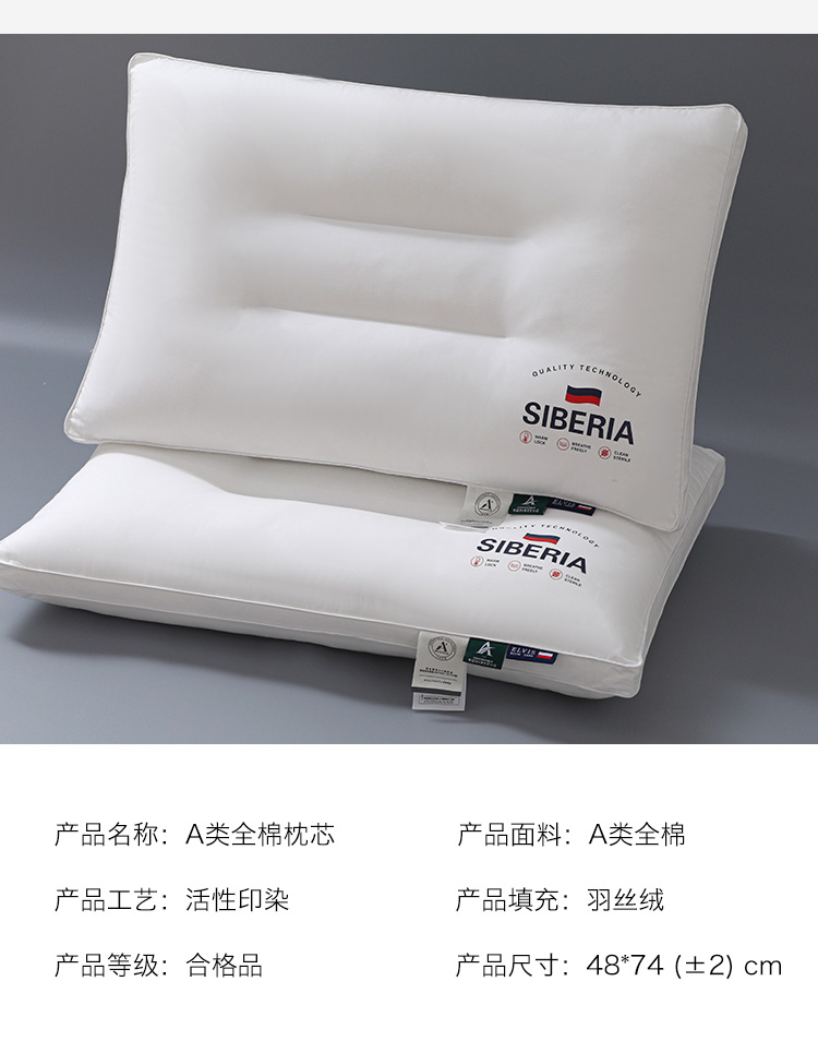 商品名称:仁宇枕业 2025新款新品枕芯西伯利亚原棉A类舒适羽丝绒枕头枕芯 国旗原棉A类定型枕