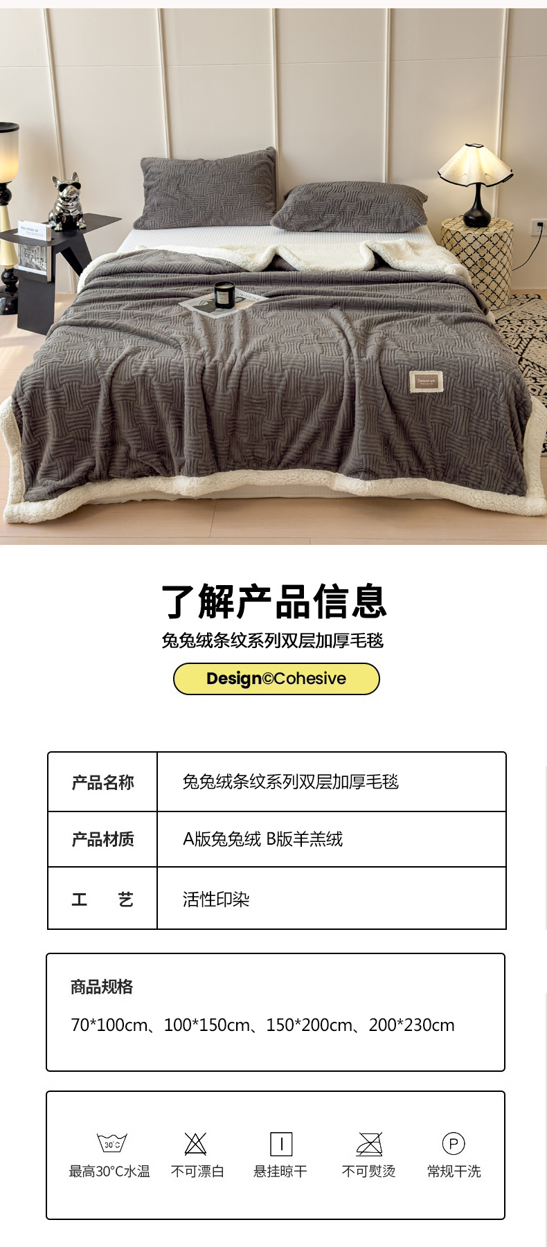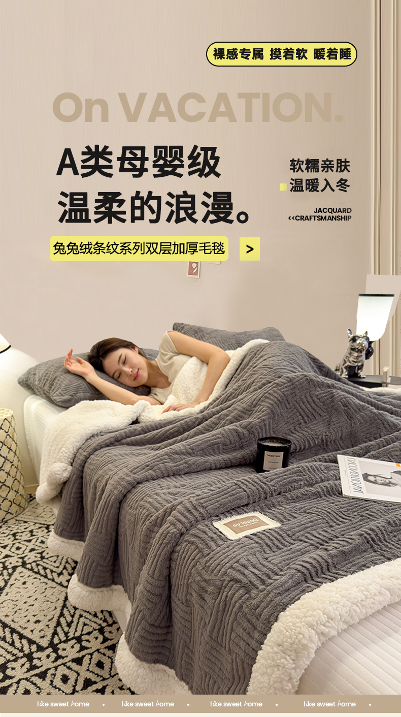 当前位置: 91家纺网 > 商品网购 > 毛毯休闲毯绒毯 > 毛毯 > 慕木家纺 2025新款A类高克重加厚兔毛绒双层毛毯斜纹条纹系列(跨境首选提供买家秀) 兔兔绒-条纹-夜空灰