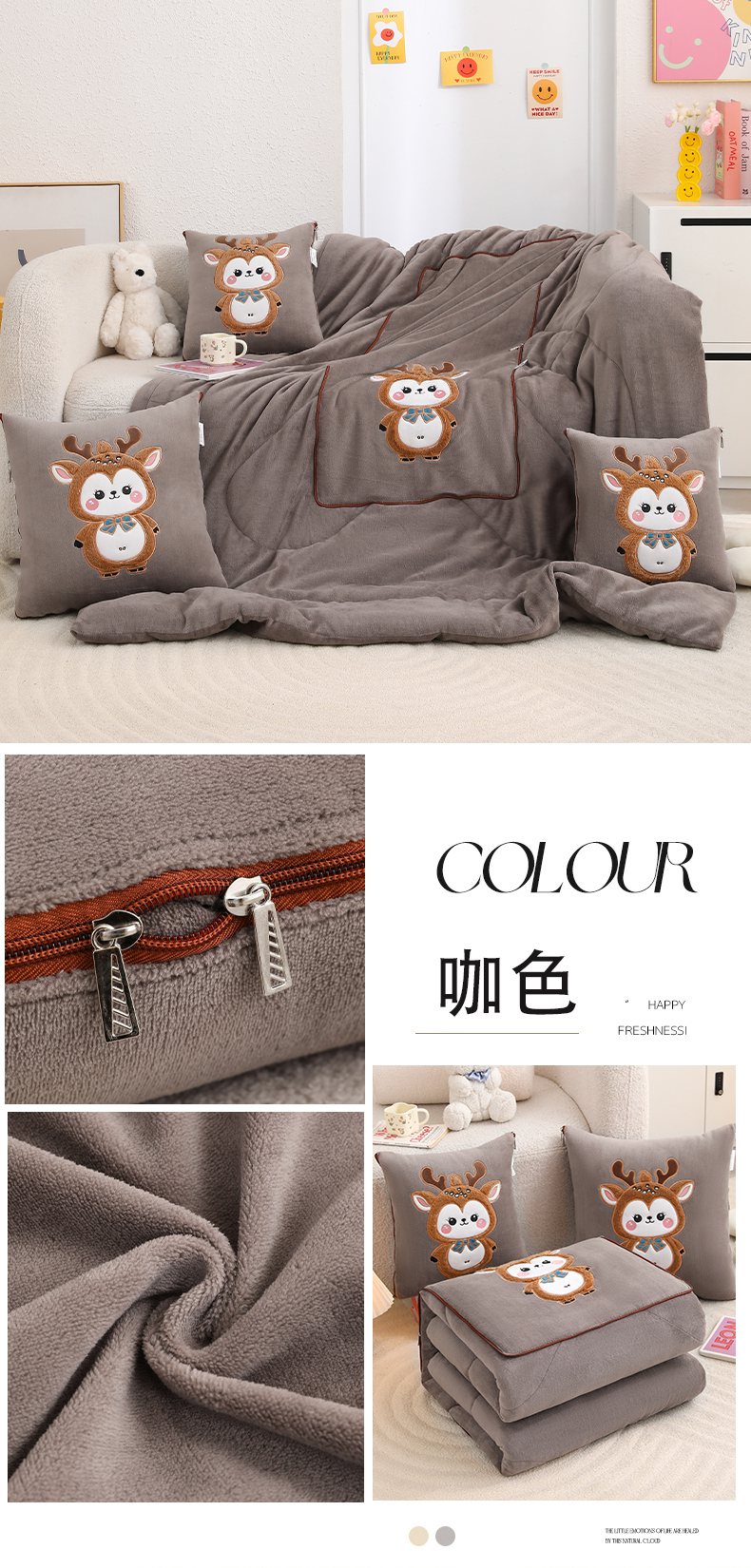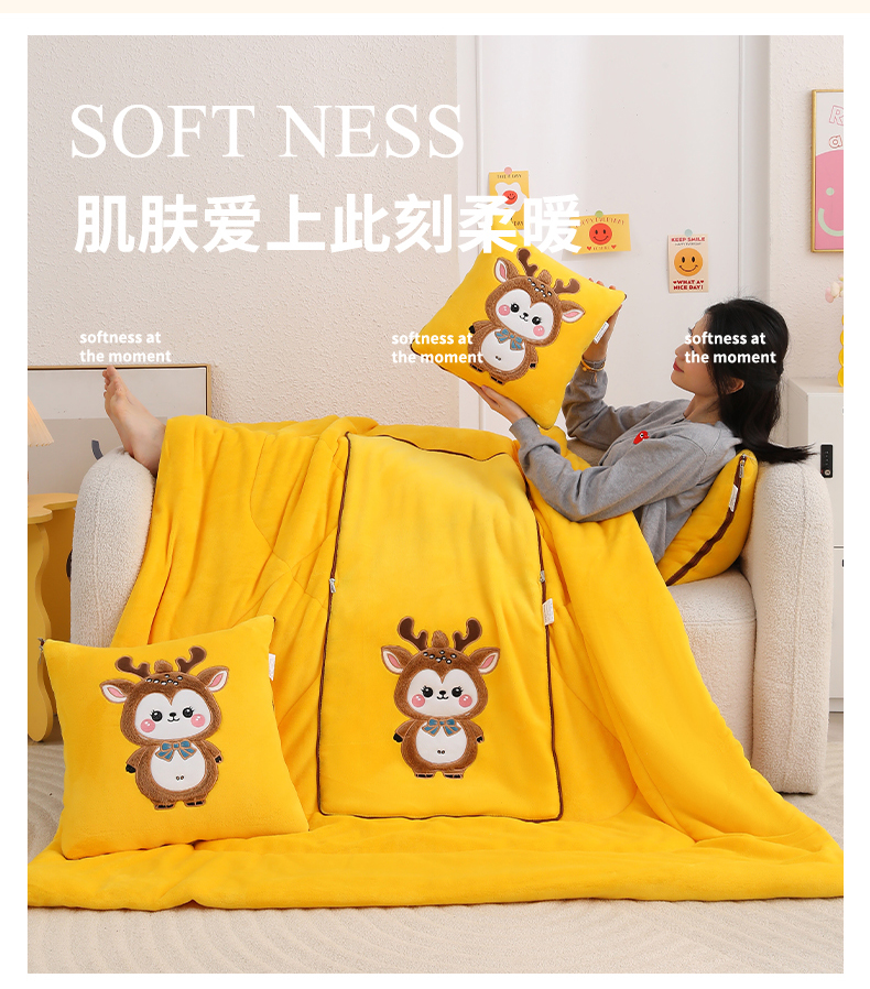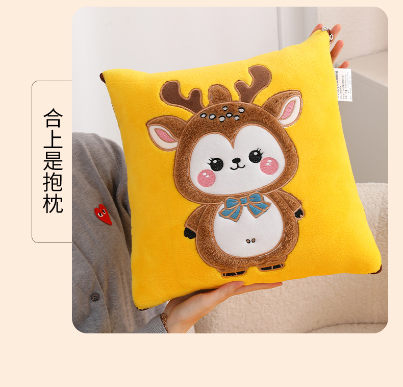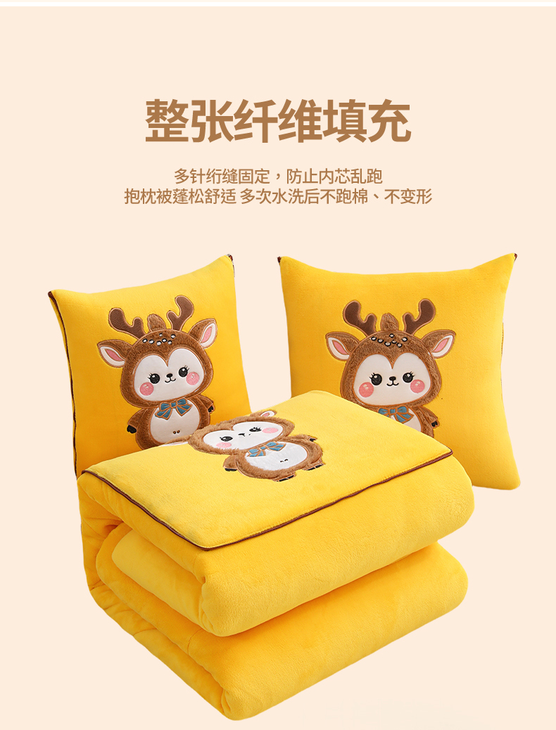 (总)宝马家纺(原梦童画) 2025新款圣诞鹿加厚抱枕被,黑色,豆沙色,黄色,咖色,组合图