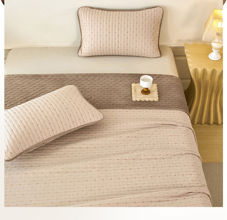 莎果家纺 2025新款60支%100纯棉高克重宝宝绒小米粒刺绣床盖 小米粒-绒卡其