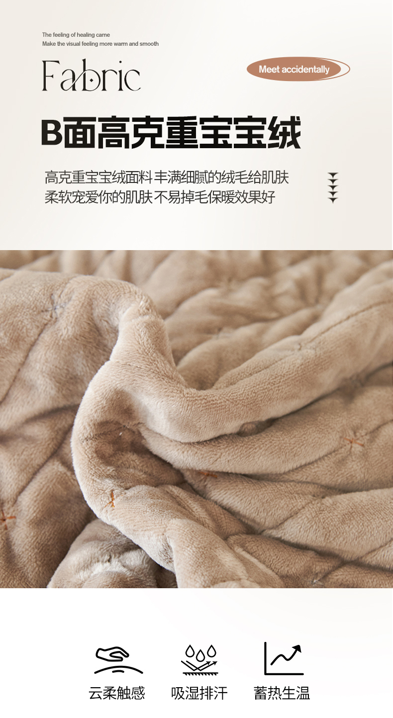 商品名称:莎果家纺 2025新款60支%100纯棉高克重宝宝绒小米粒刺绣床盖 小米粒-绒卡其