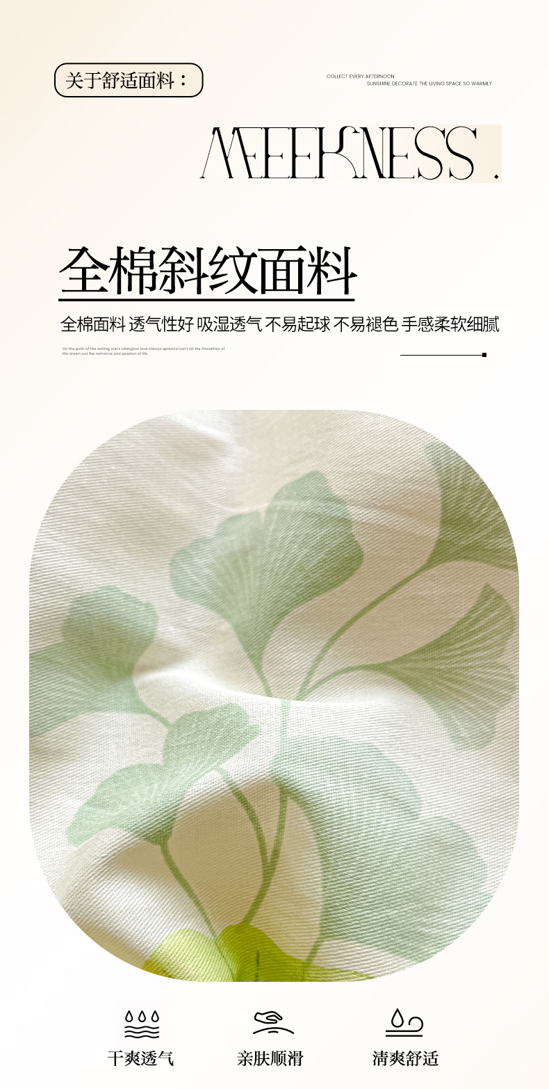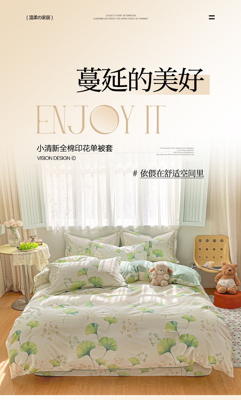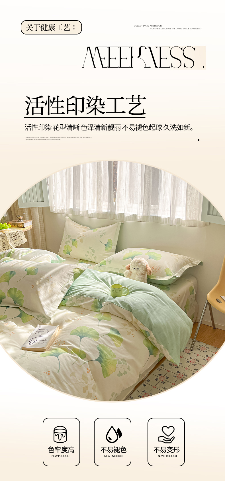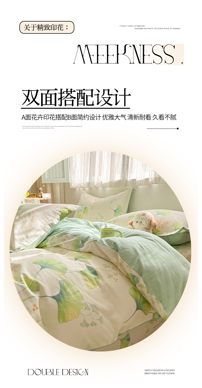 商品名称:花梦欣 2026新款全棉纯棉印花单品系列花卉款单被套被套单品单被套 青绿银杏