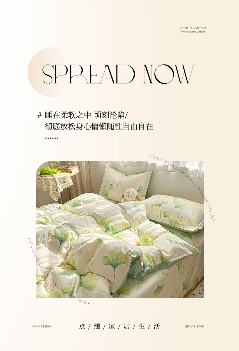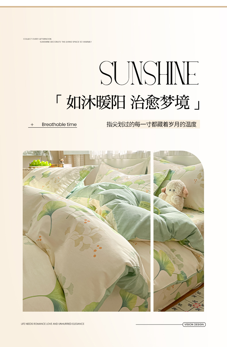 花梦欣 2026新款全棉纯棉印花单品系列花卉款单被套被套单品单被套 青绿银杏