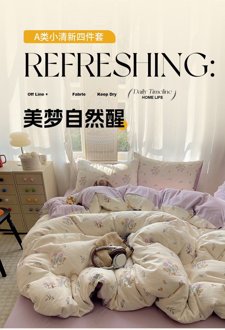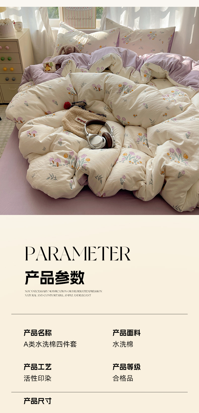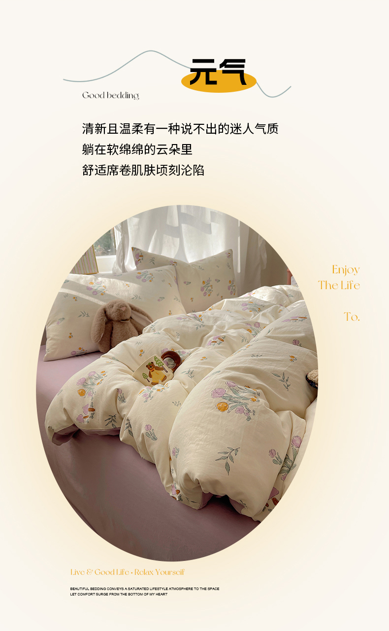 当前位置: 91家纺网 > 商品网购 > 床品套件 > 四件套 > 水洗棉四件套 > 沐芷 2026 A类105g水洗棉四件套超柔手感床上宿舍三件套床单被套 小花园