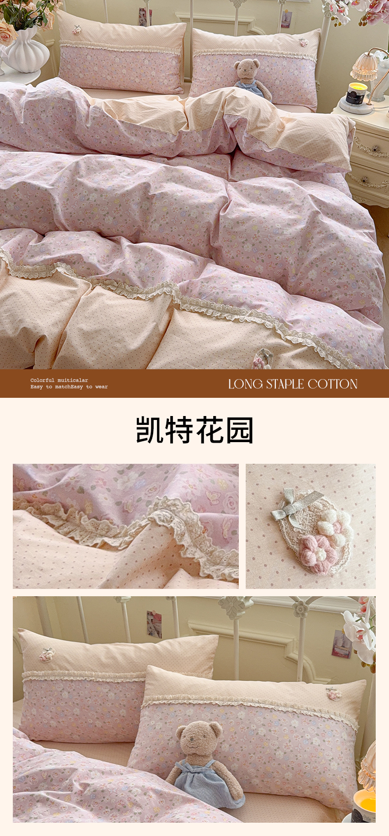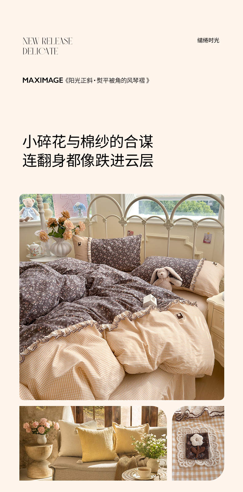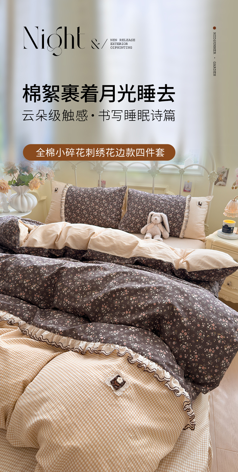 当前位置: 91家纺网 > 商品网购 > 床品套件 > 四件套 > 全棉普通四件套 > 安莱生活 2026年新品全棉纯棉小碎花刺绣花边款四件套-小碎花系列 漫语花