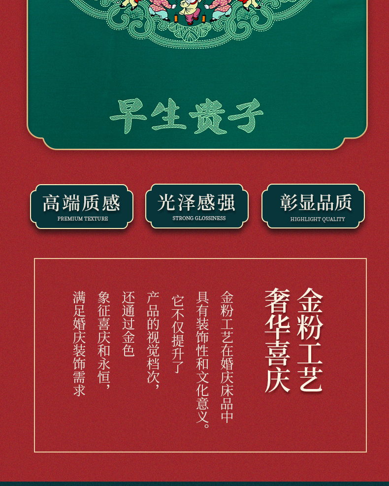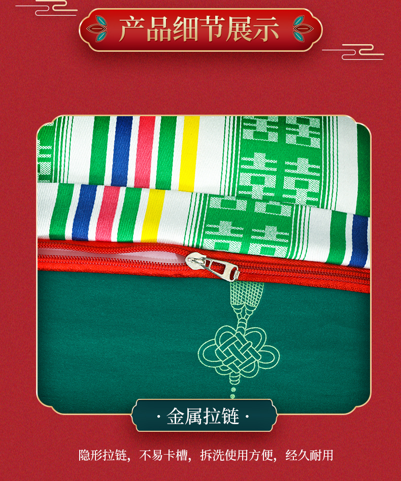 商品名称:浩情国际婚庆供货中心 2026新款高端婚庆经典结婚被单龙凤百子被套老粗布100%全棉纯棉大红长期供货 百子百福-深绿