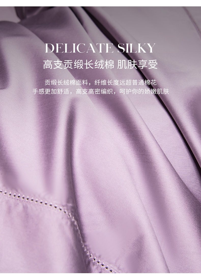 轩和家居 2026新款高支贡缎长绒棉镂空四件套 琉璃紫