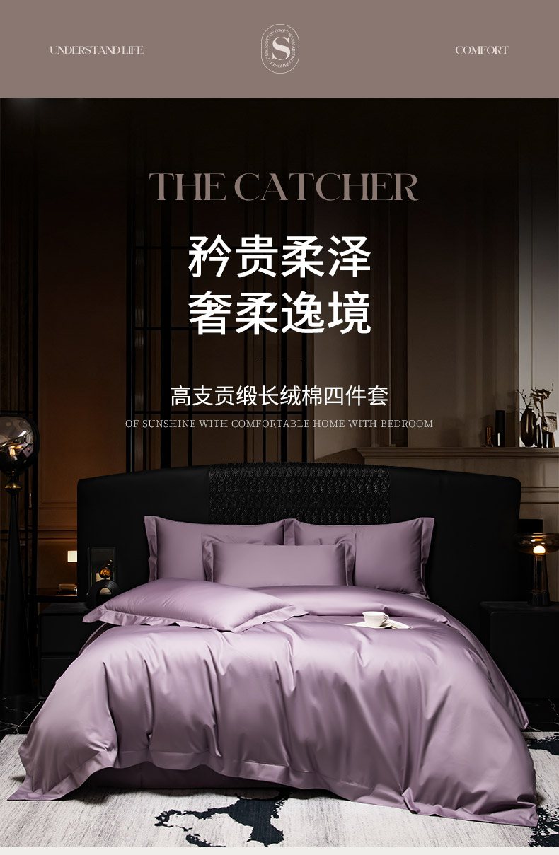 商品名称:轩和家居 2026新款高支贡缎长绒棉镂空四件套 琉璃紫