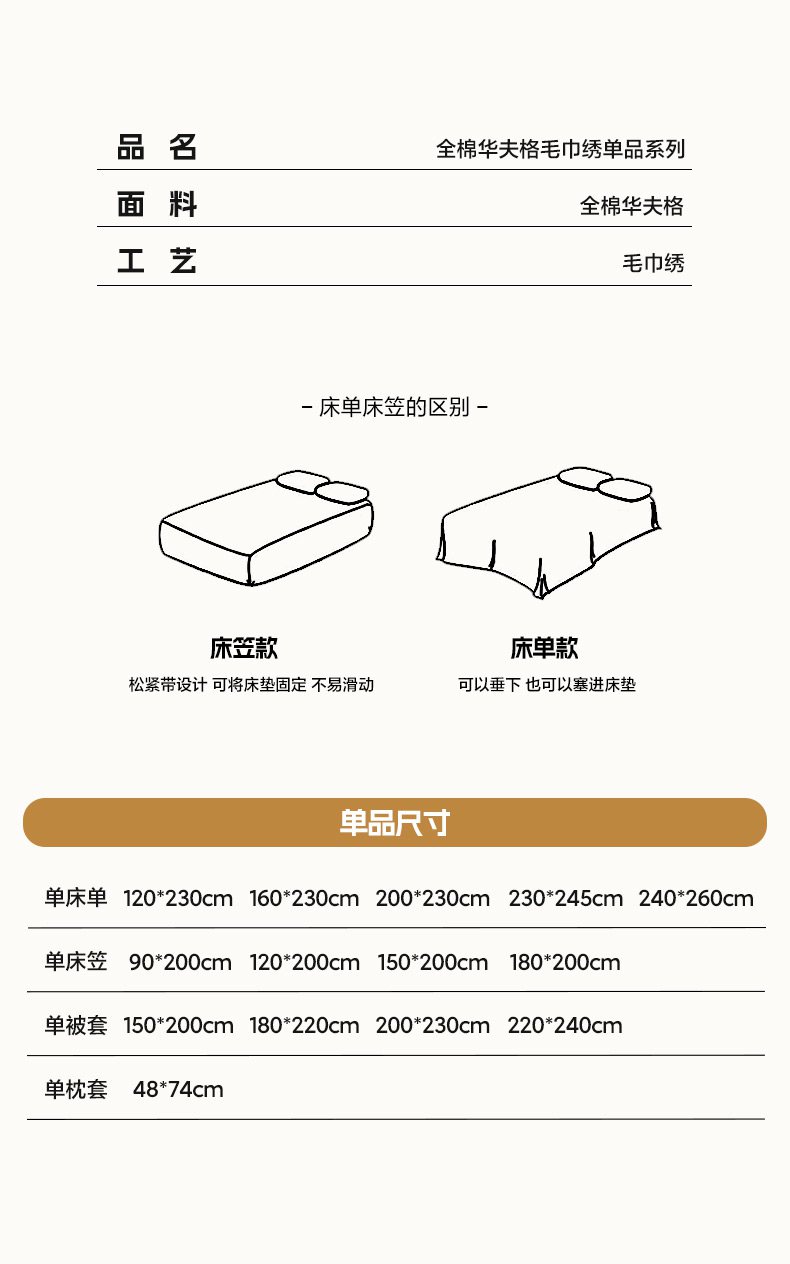 120*230cm单床单 | ¥42.00 |