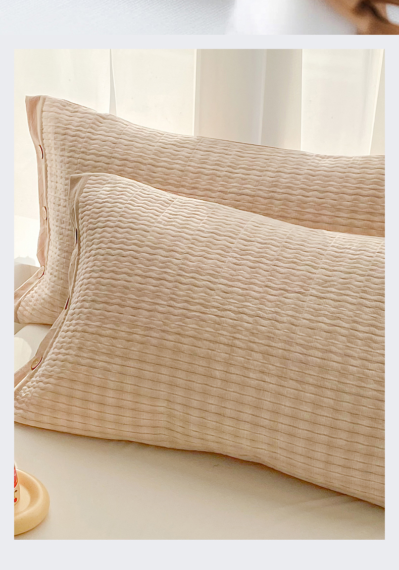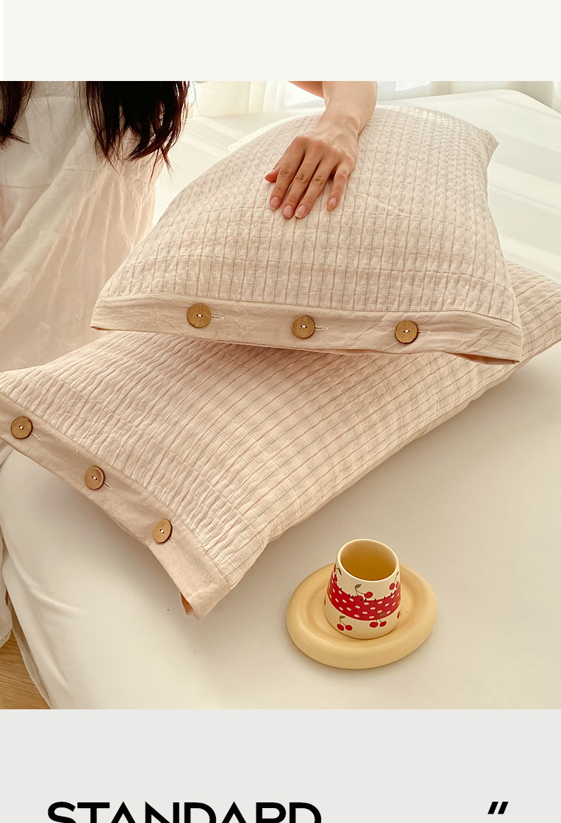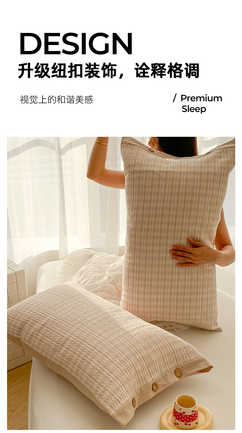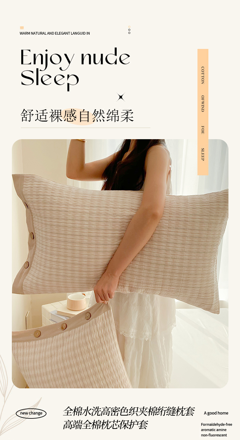 商品名称:美宜家 2026新款全棉水洗高密色织夹棉纺缝枕套高端全棉枕芯保护套 6.邂逅米