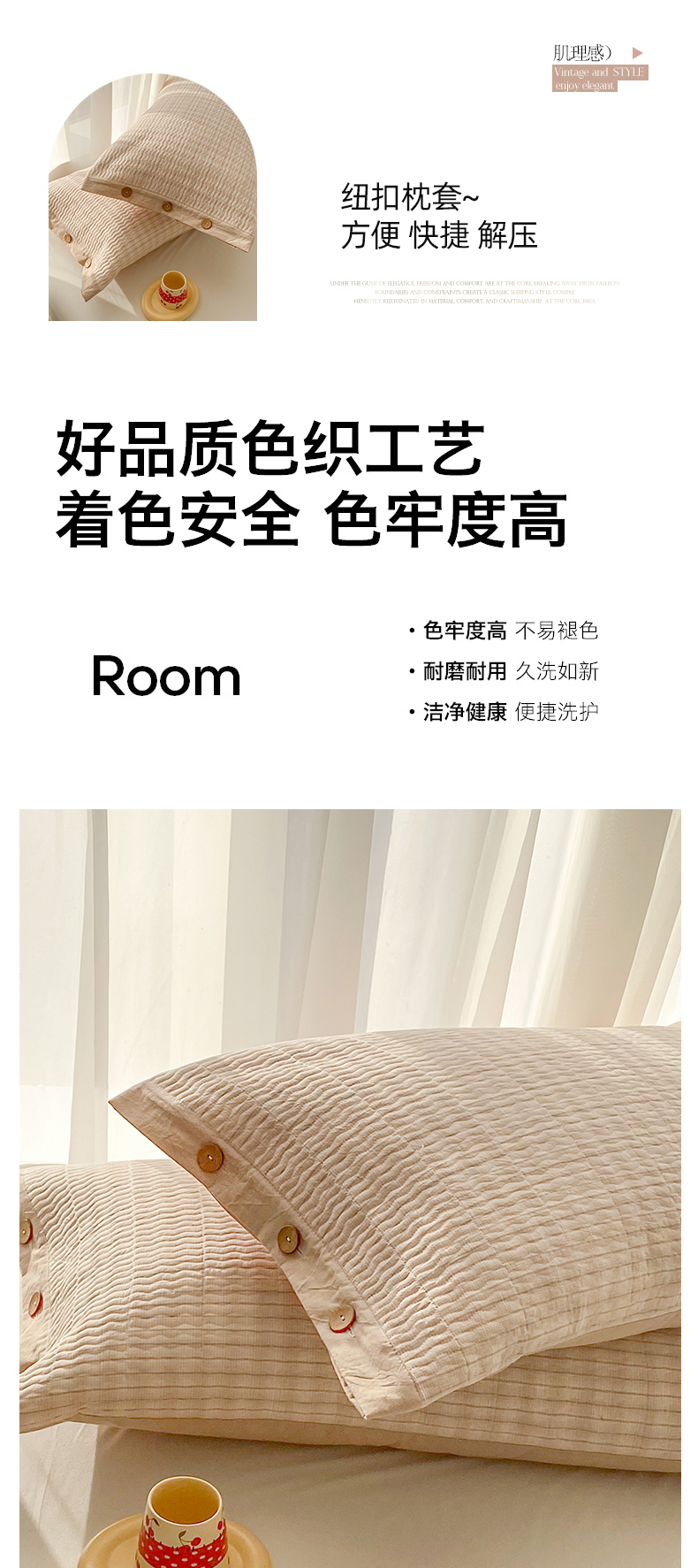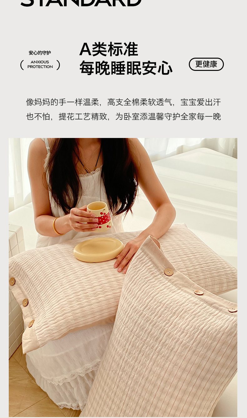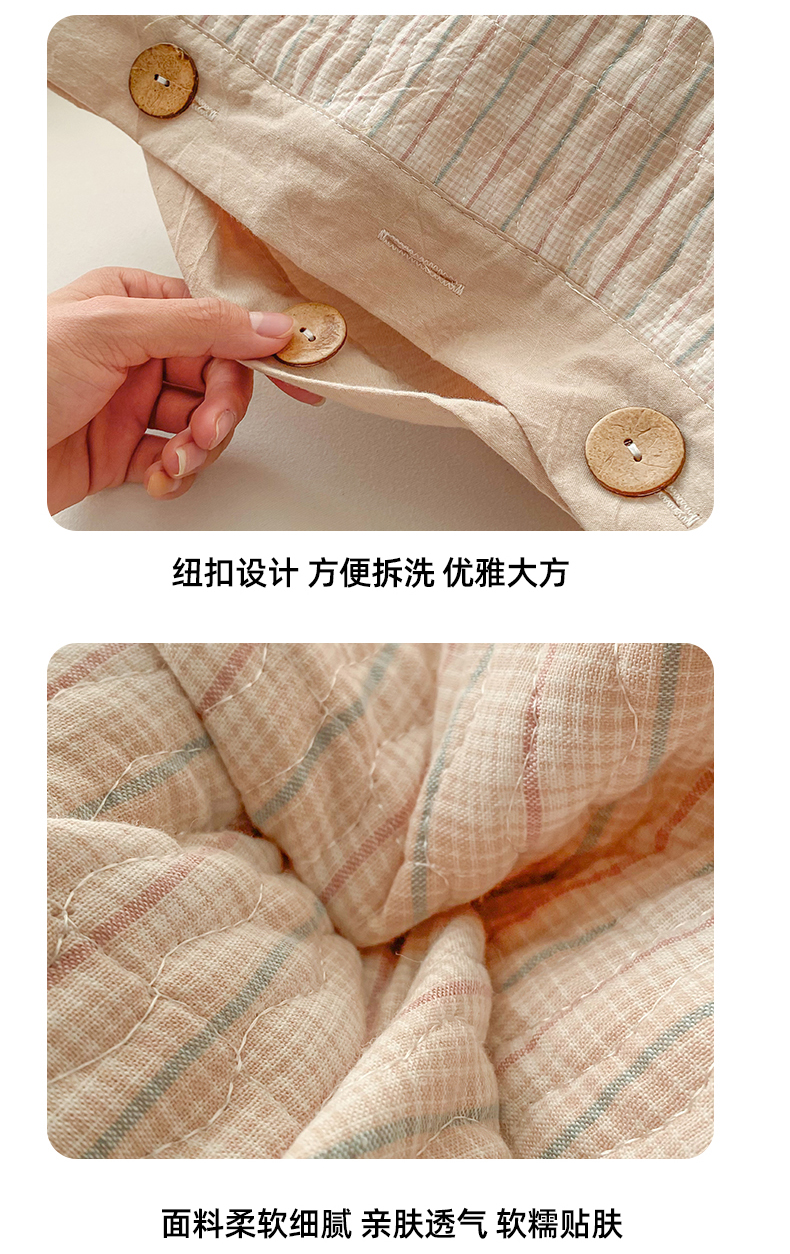 商品名称:美宜家 2026新款全棉水洗高密色织夹棉纺缝枕套高端全棉枕芯保护套 6.邂逅米