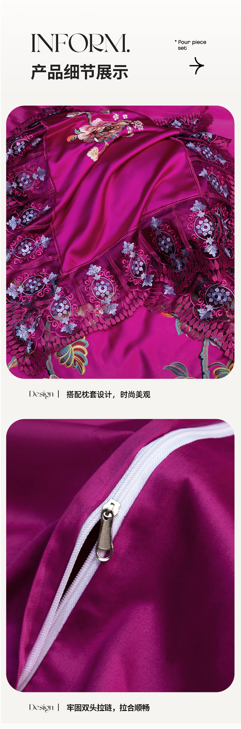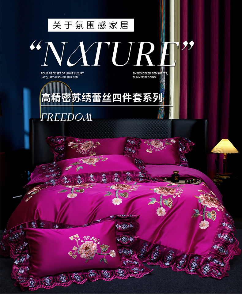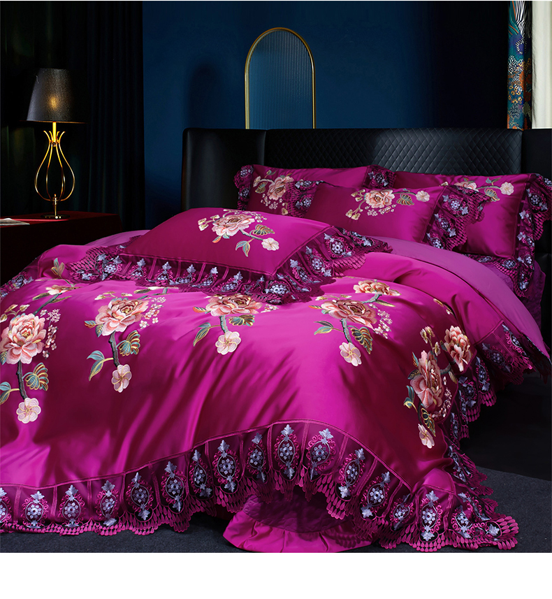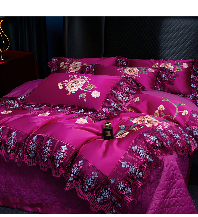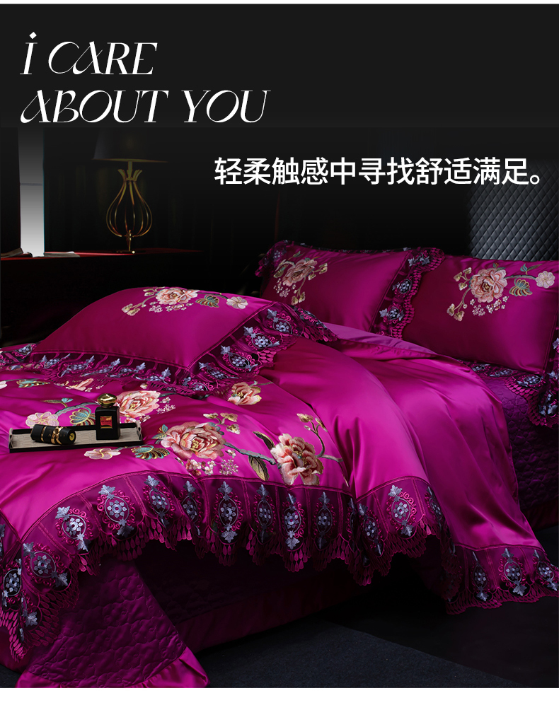 OL家纺 2026新款高精密苏绣蕾丝四件套 金玉满堂-玫红