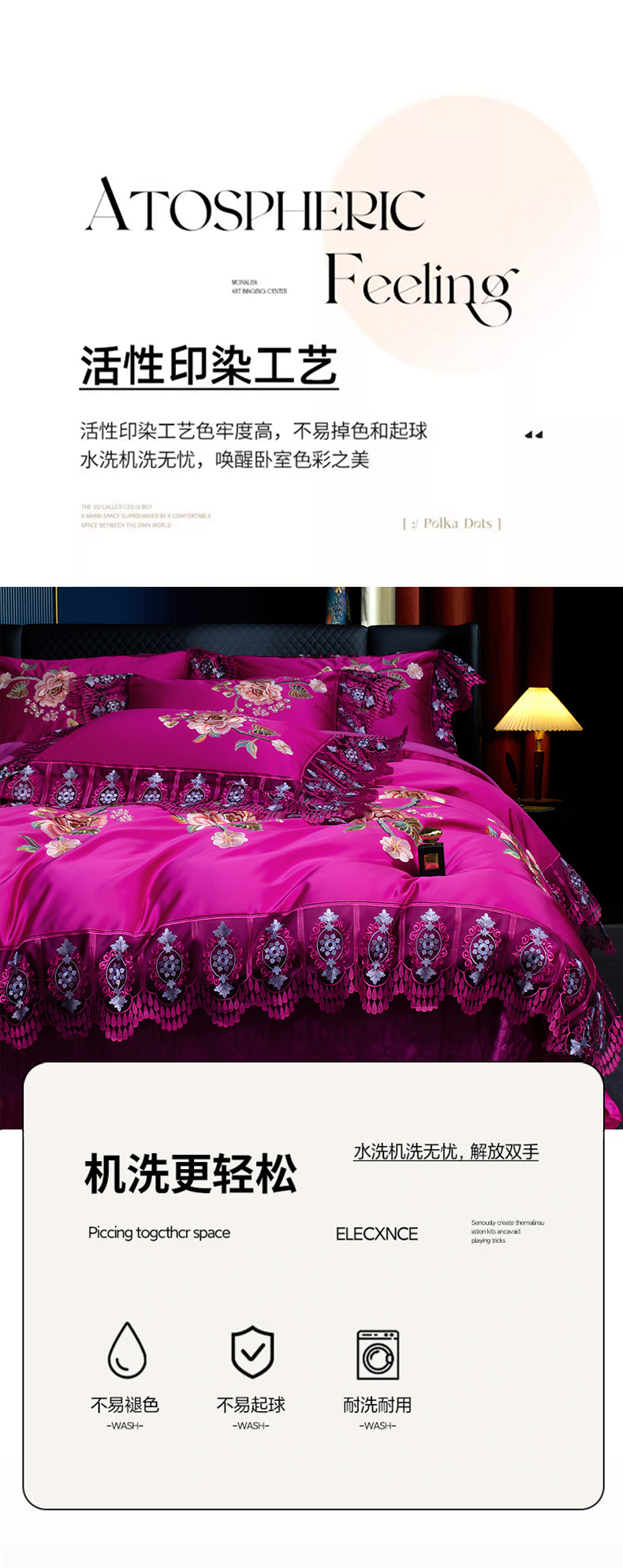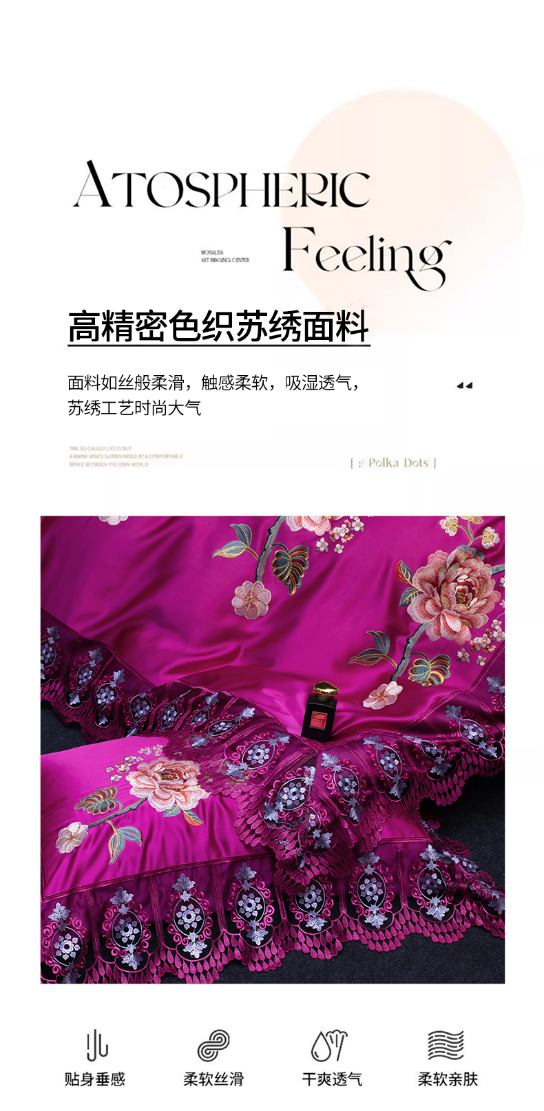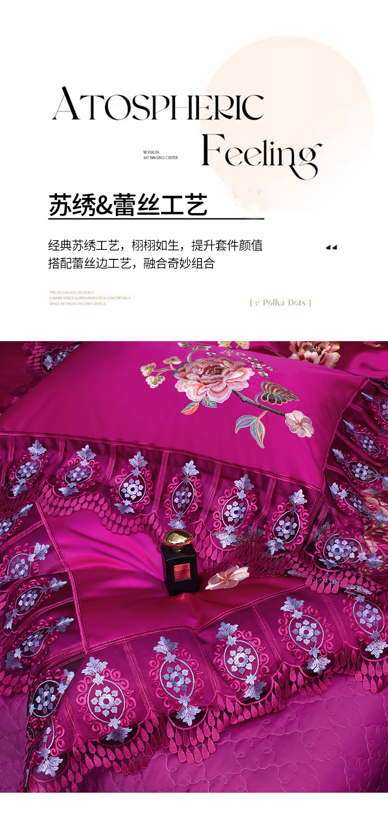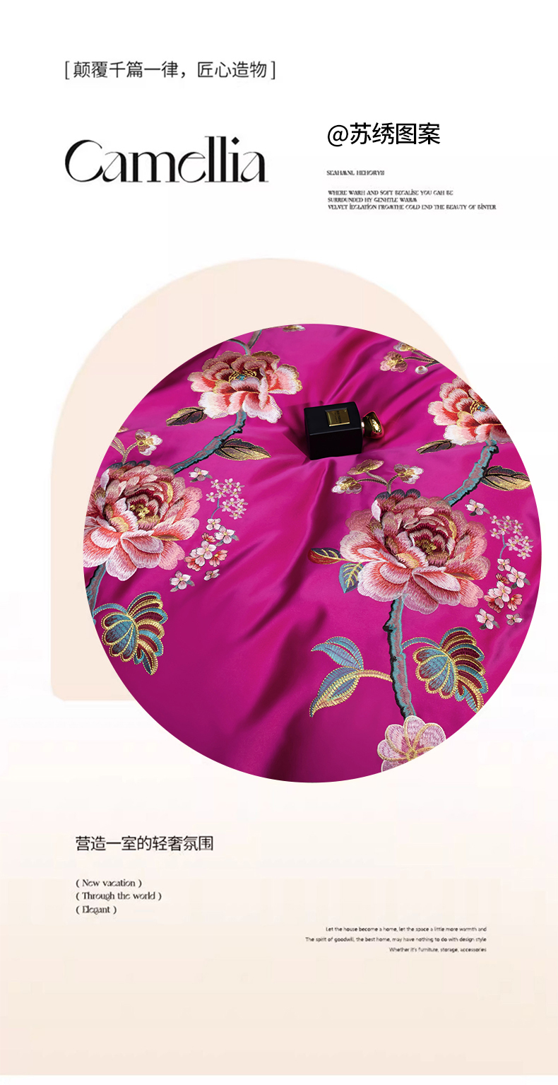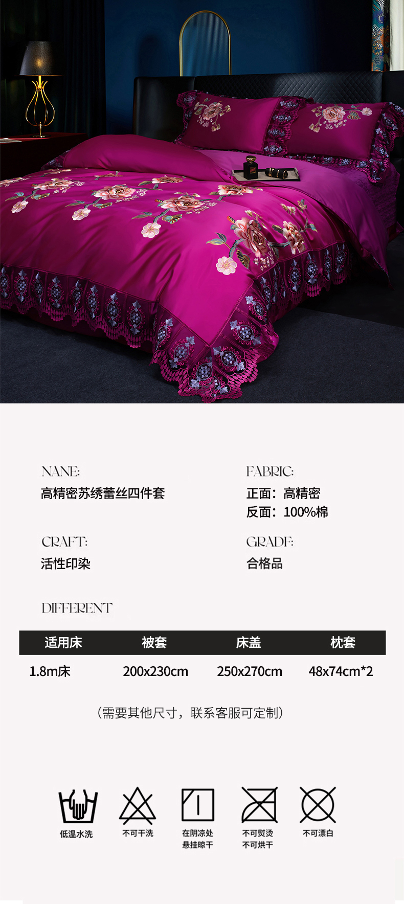 商品名称:OL家纺 2026新款高精密苏绣蕾丝四件套 金玉满堂-玫红