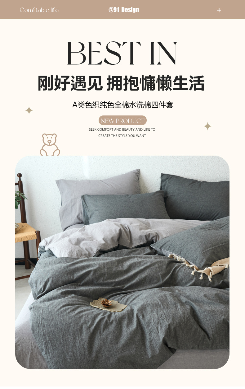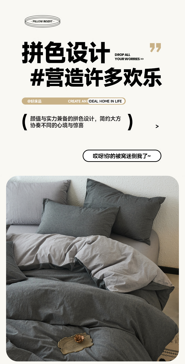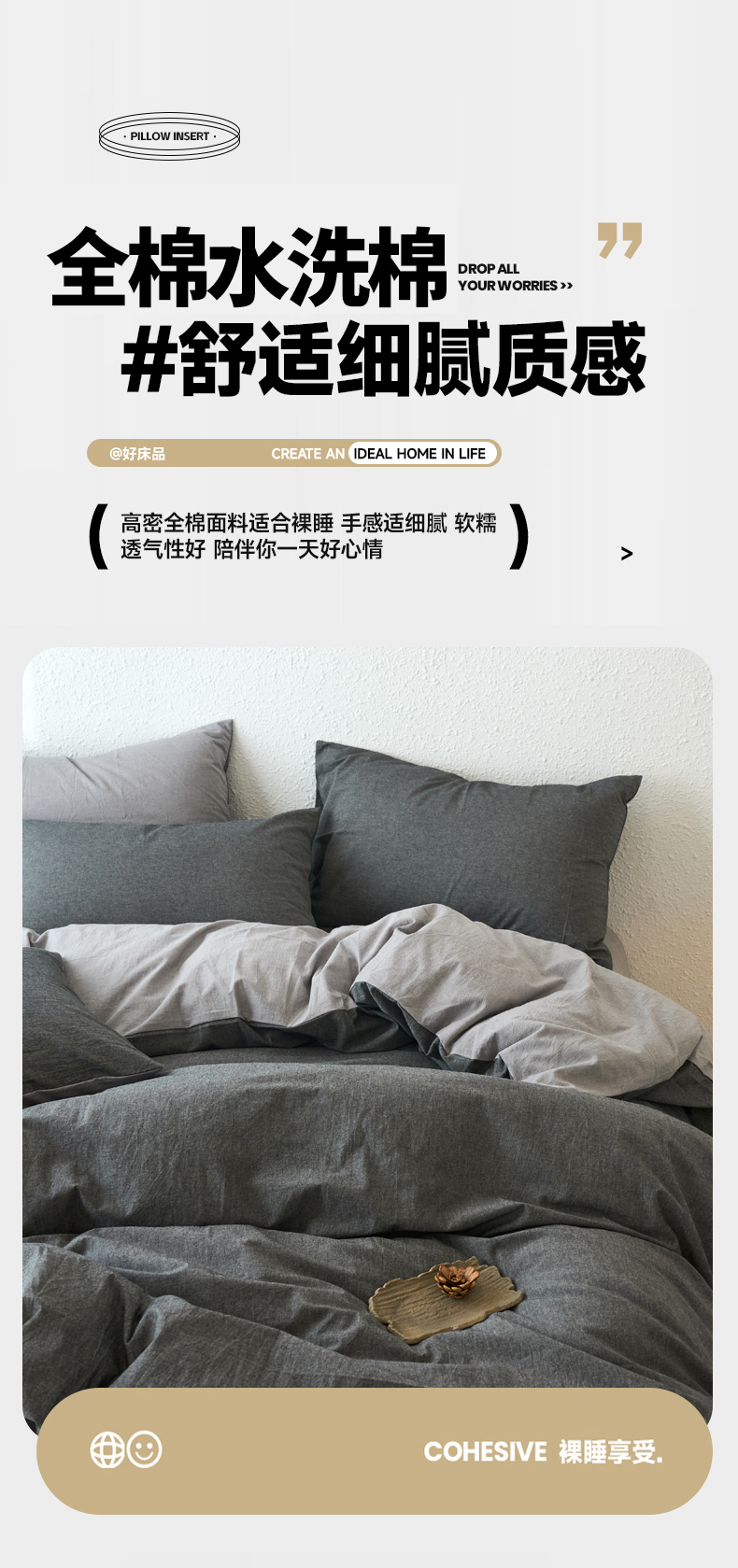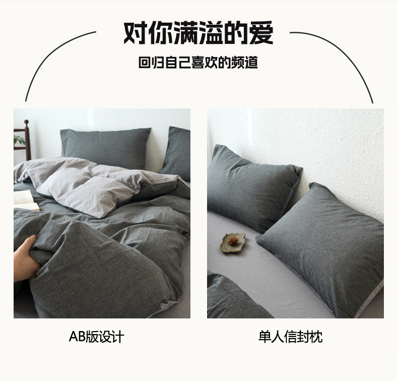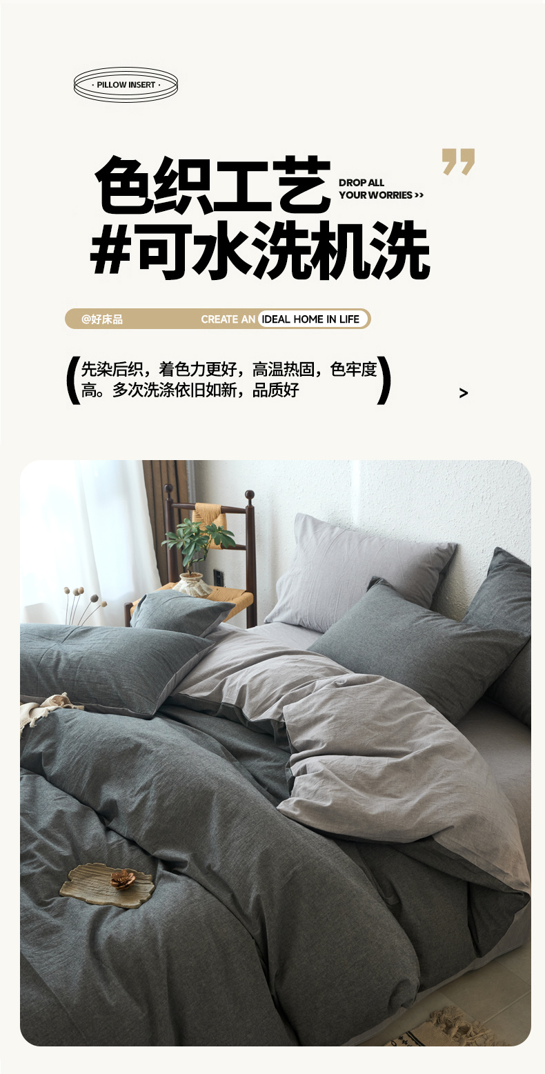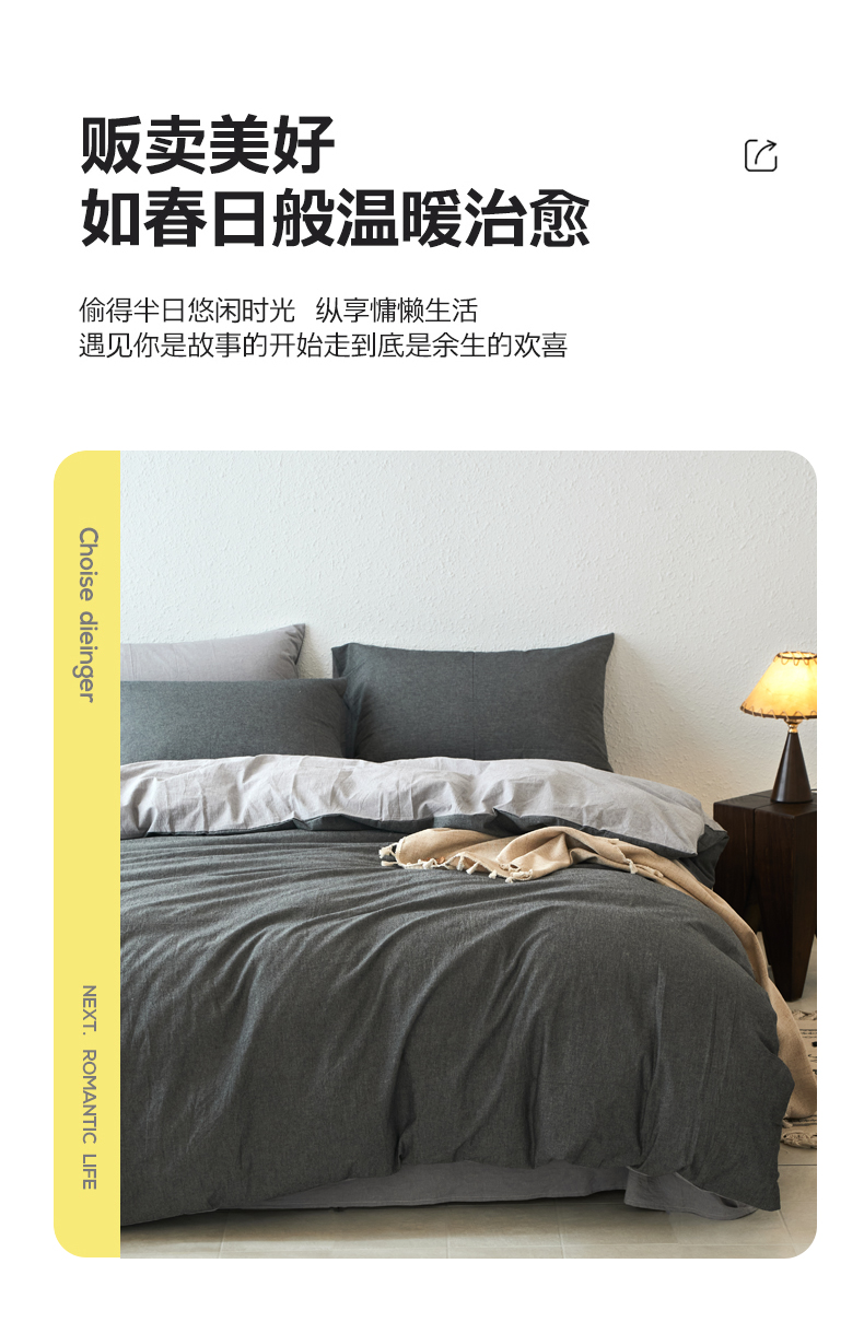 当前位置: 91家纺网 > 商品网购 > 床品套件 > 四件套 > 全棉普通四件套 > 兰紫橙家纺 2026新款A类色织纯色全棉水洗棉四件套 全棉水洗棉-月岩黑+浅灰