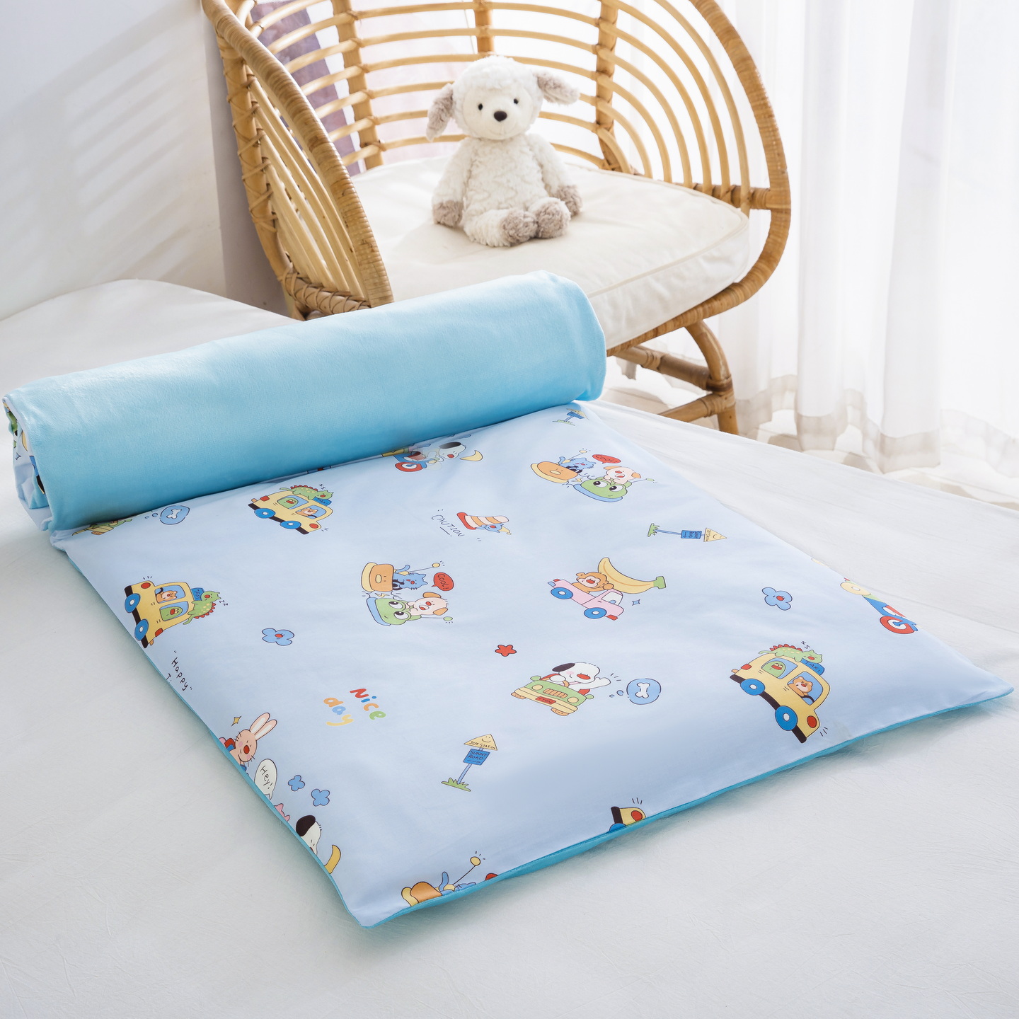 当前位置: 91家纺网 > 商品网购 > 婴童用品 > 婴童床品套件 > 乐秀 2026新款幼儿园双面四季款儿童床垫套+床垫芯 欢乐碰碰车