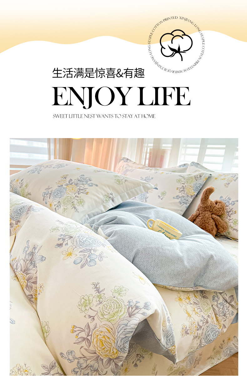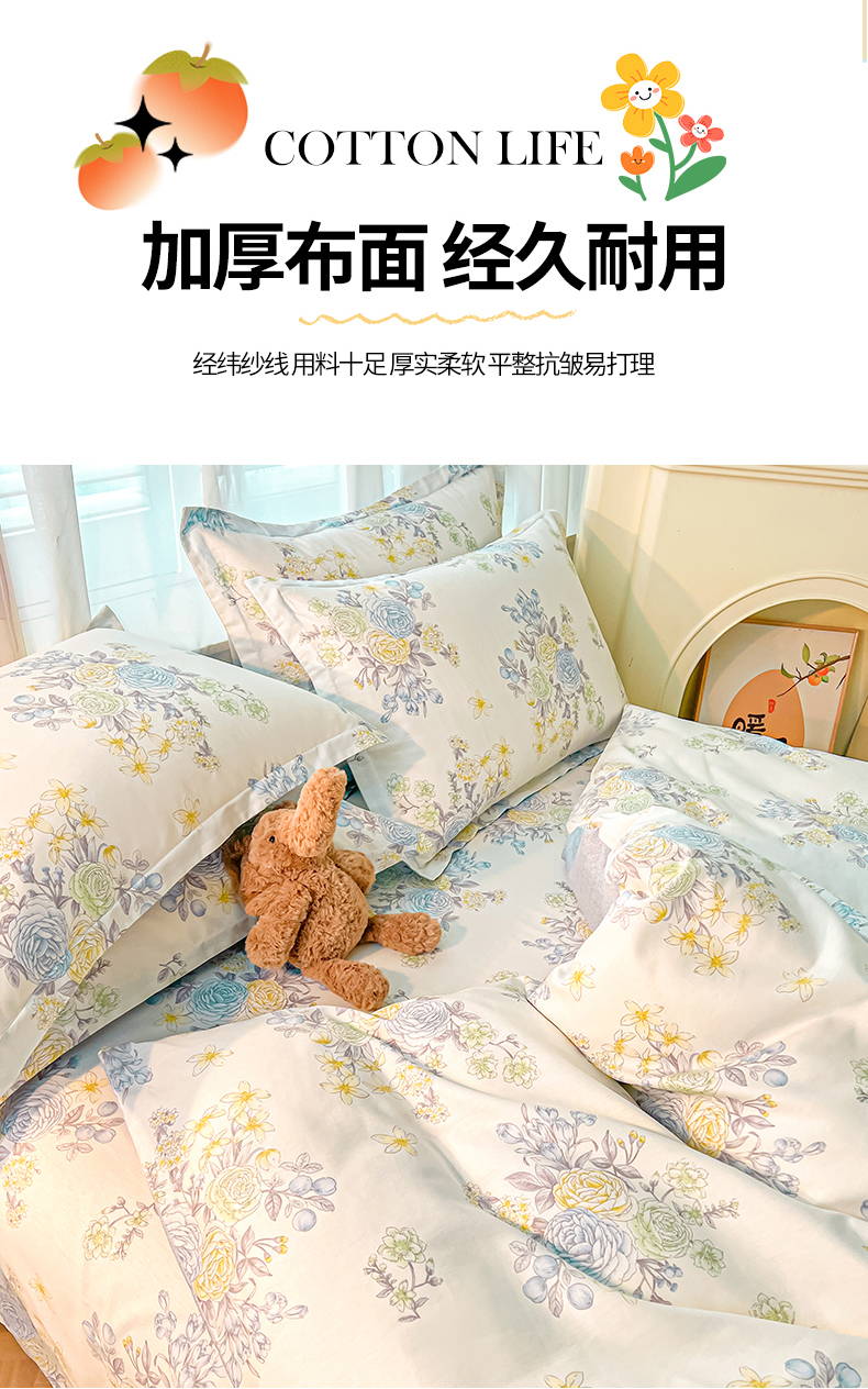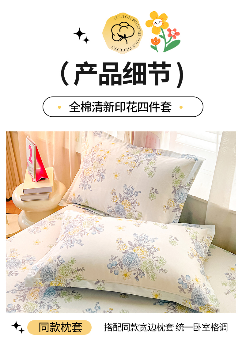 当前位置: 91家纺网 > 商品网购 > 床品套件 > 四件套 > 全棉普通四件套 > 珂博家纺 2026新款12868全棉纯棉小清新印花四件套 晨曦花露