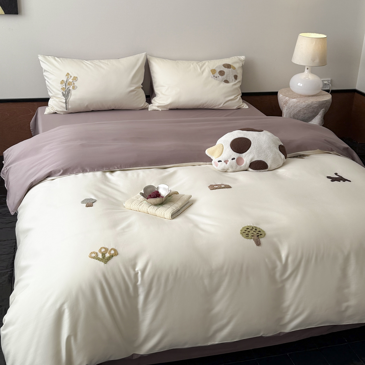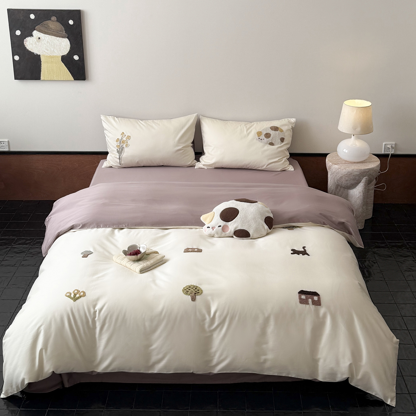 鹿班家居 2026春季新品100S长绒棉毛巾绣系列四件套-午后(标准会员-20元) 午后-白紫