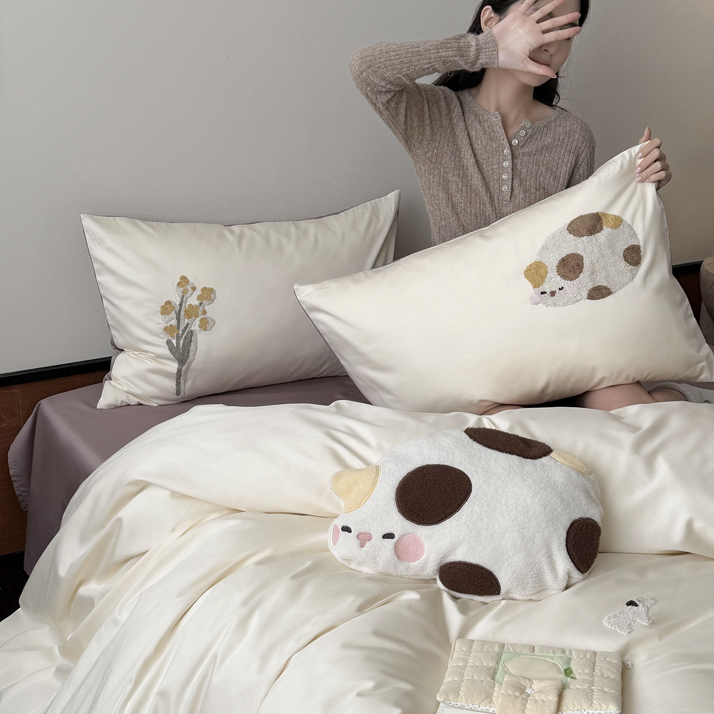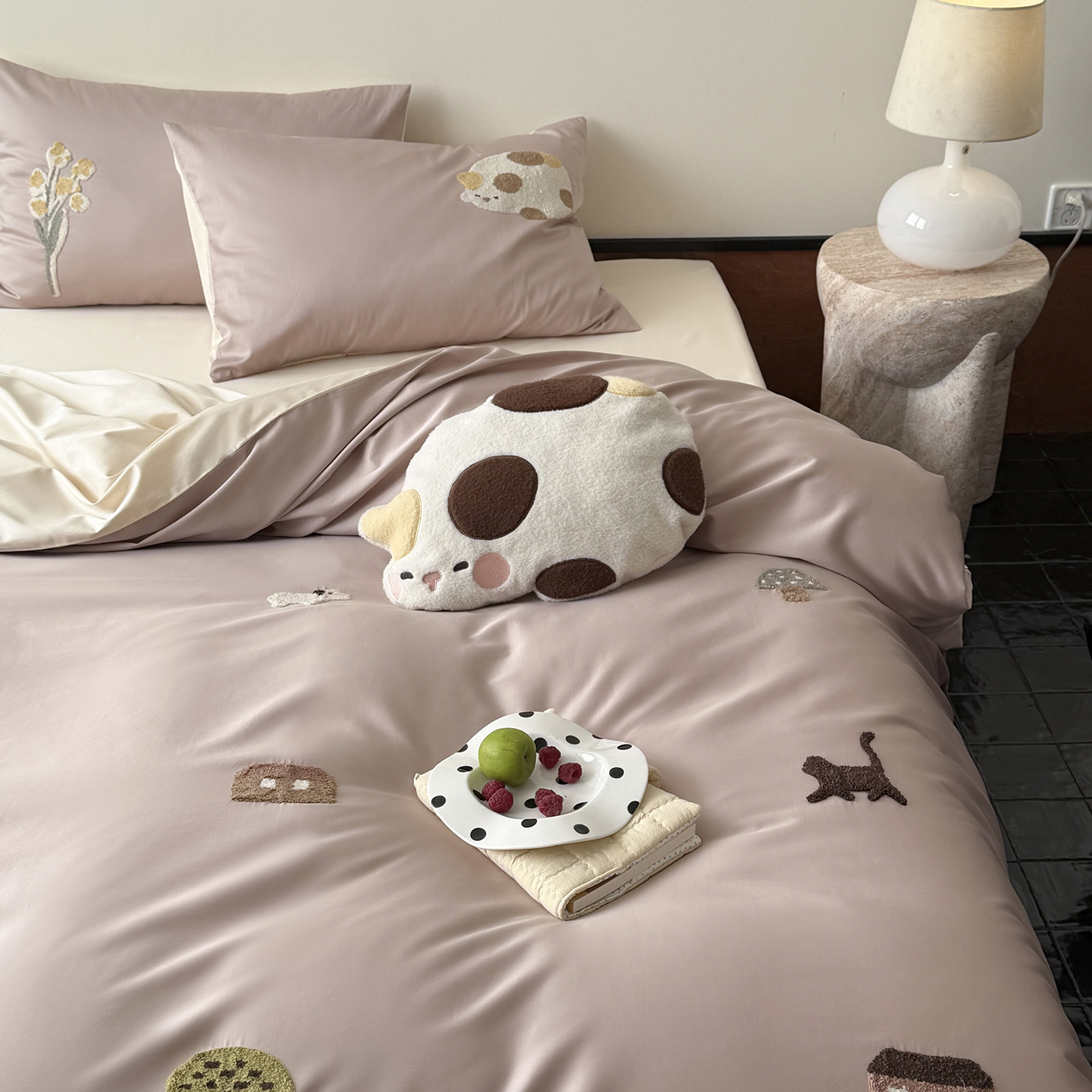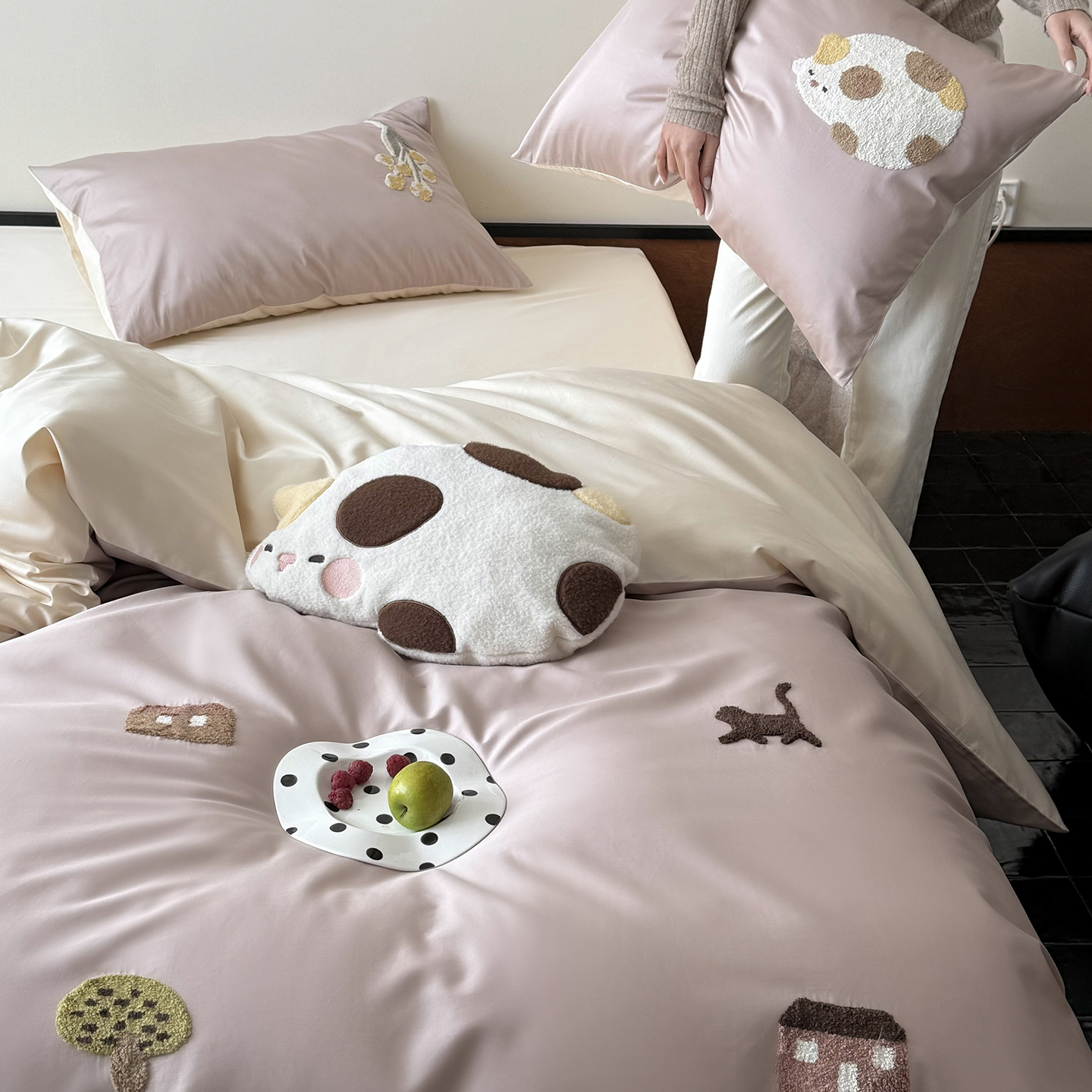 (总)鹿班家居 2026春季新品100S长绒棉精密刺绣系列四件套-悠悠猫栖(标准会员-20元),悠悠猫栖-粉色,悠悠猫栖-紫色