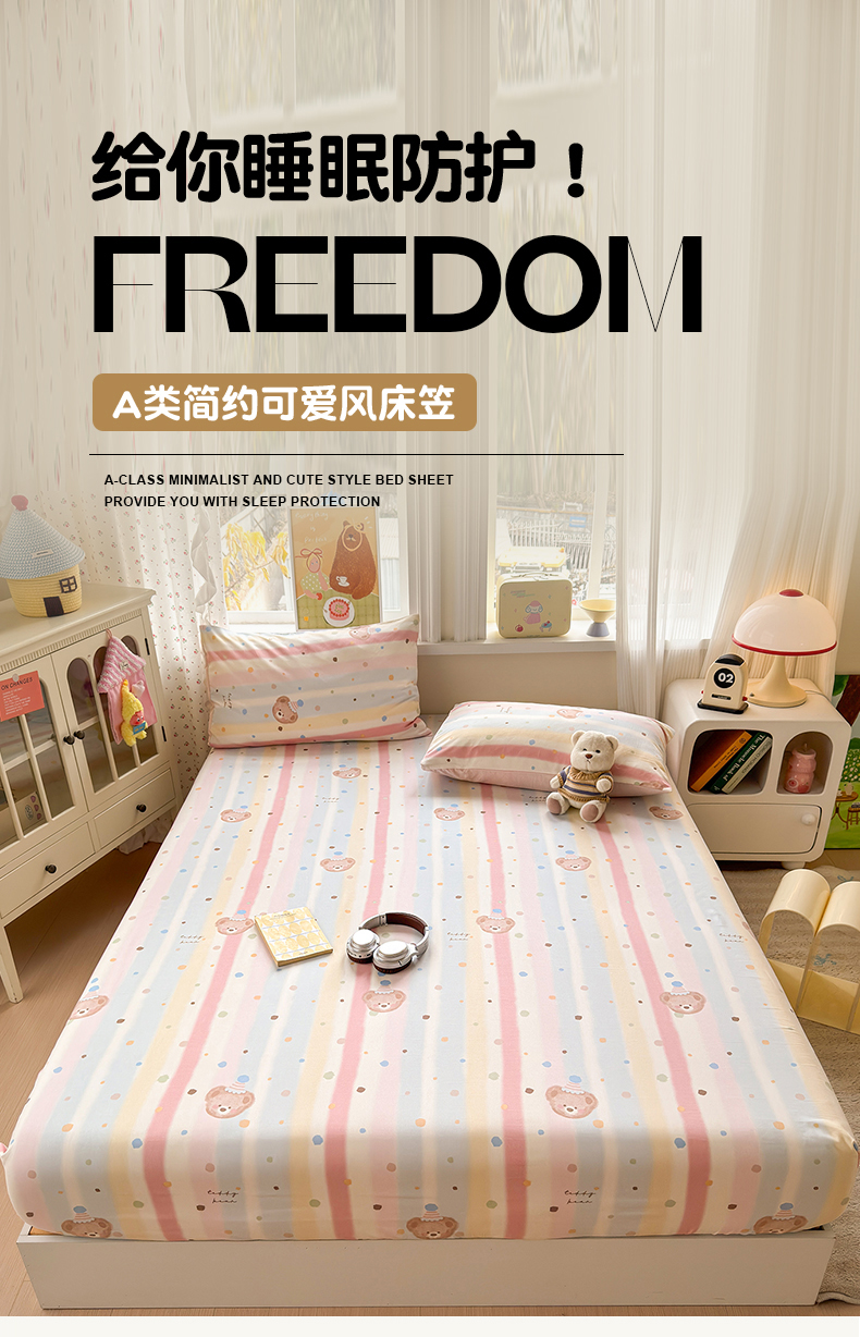 • 91家纺网 家纺一手货源 找家纺 (总)沐芷 2026 【提供买家秀】A类单床单古法水洗仿棉 单人双人床单三件套,甜梦糖豆,星仔,巴黎甜心,白月光,豹纹音乐,波点汪语,彩虹跳跳糖,漫游小鱼,萌犬游记,萌物,迷你格-黄,迷你格-蓝,奶味圆饼,暖意小熊,樱桃物语