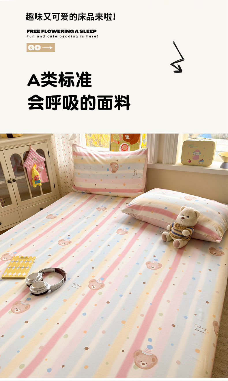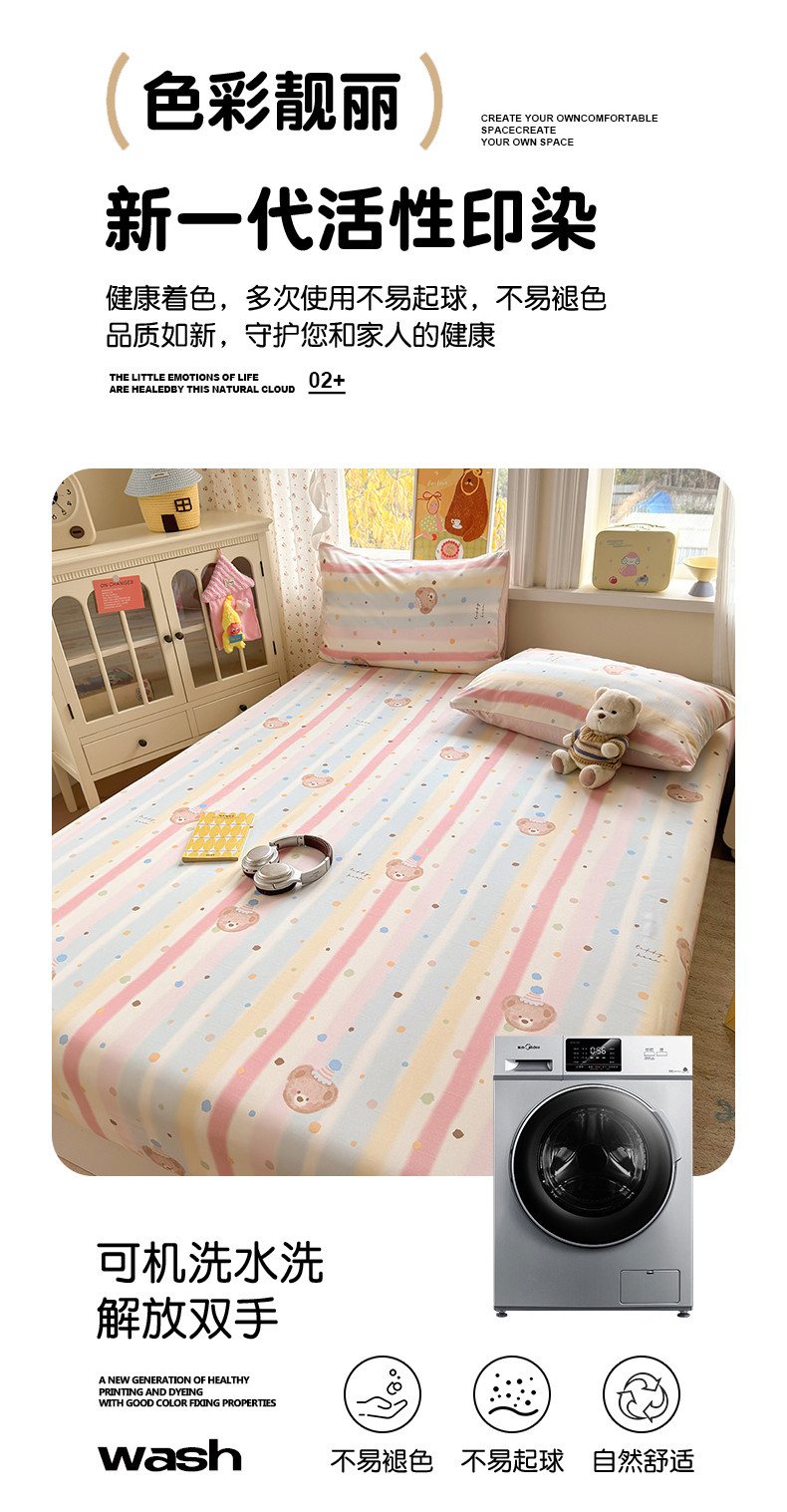 (总)沐芷 2026 【提供买家秀】A类单床单古法水洗仿棉 单人双人床单三件套,甜梦糖豆,星仔,巴黎甜心,白月光,豹纹音乐,波点汪语,彩虹跳跳糖,漫游小鱼,萌犬游记,萌物,迷你格-黄,迷你格-蓝,奶味圆饼,暖意小熊,樱桃物语