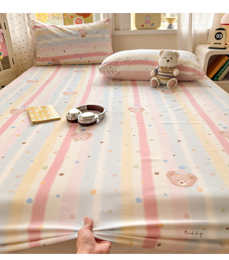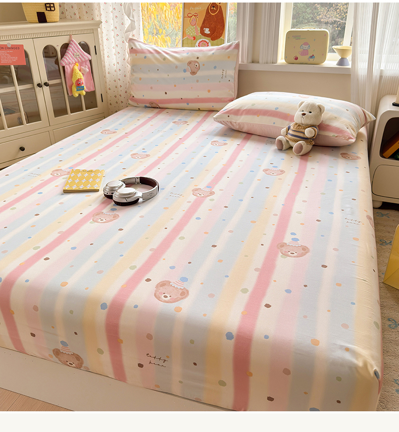 (总)沐芷 2026 【提供买家秀】古法水洗仿棉床笠席梦思床罩床垫防滑床套罩床笠三件套,萌物,甜梦糖豆,巴黎甜心,白月光,豹纹音乐,波点汪语,彩虹跳跳糖,漫游小鱼,萌犬游记,迷你格-黄,迷你格-蓝,奶味圆饼,暖意小熊,星仔,樱桃物语,组合图