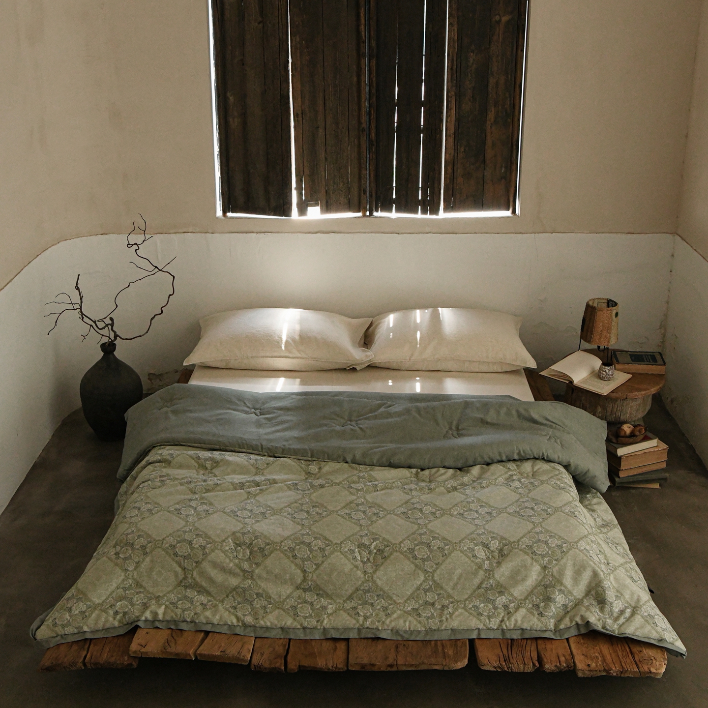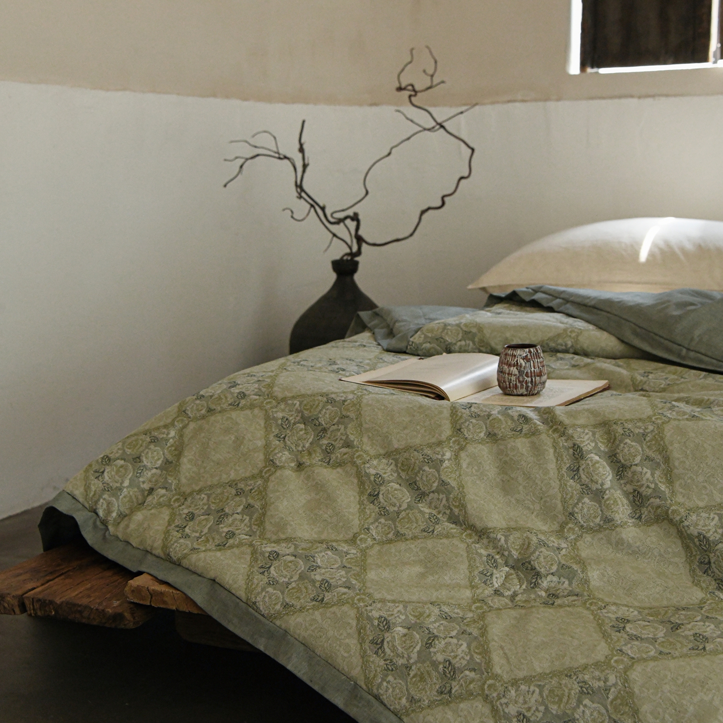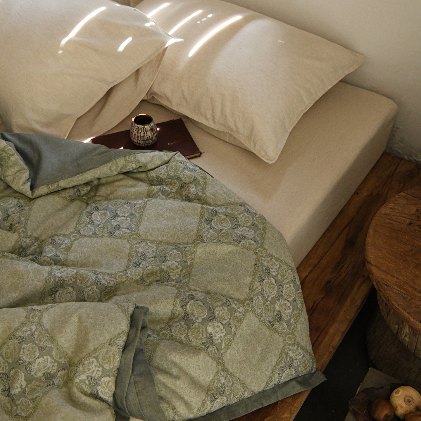 商品名称:(总)松色家居 2026新款棉麻水洗色织春秋被-花韵-灰