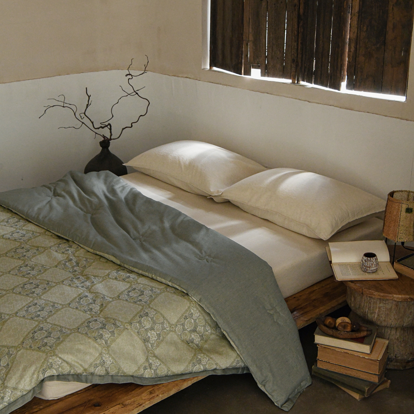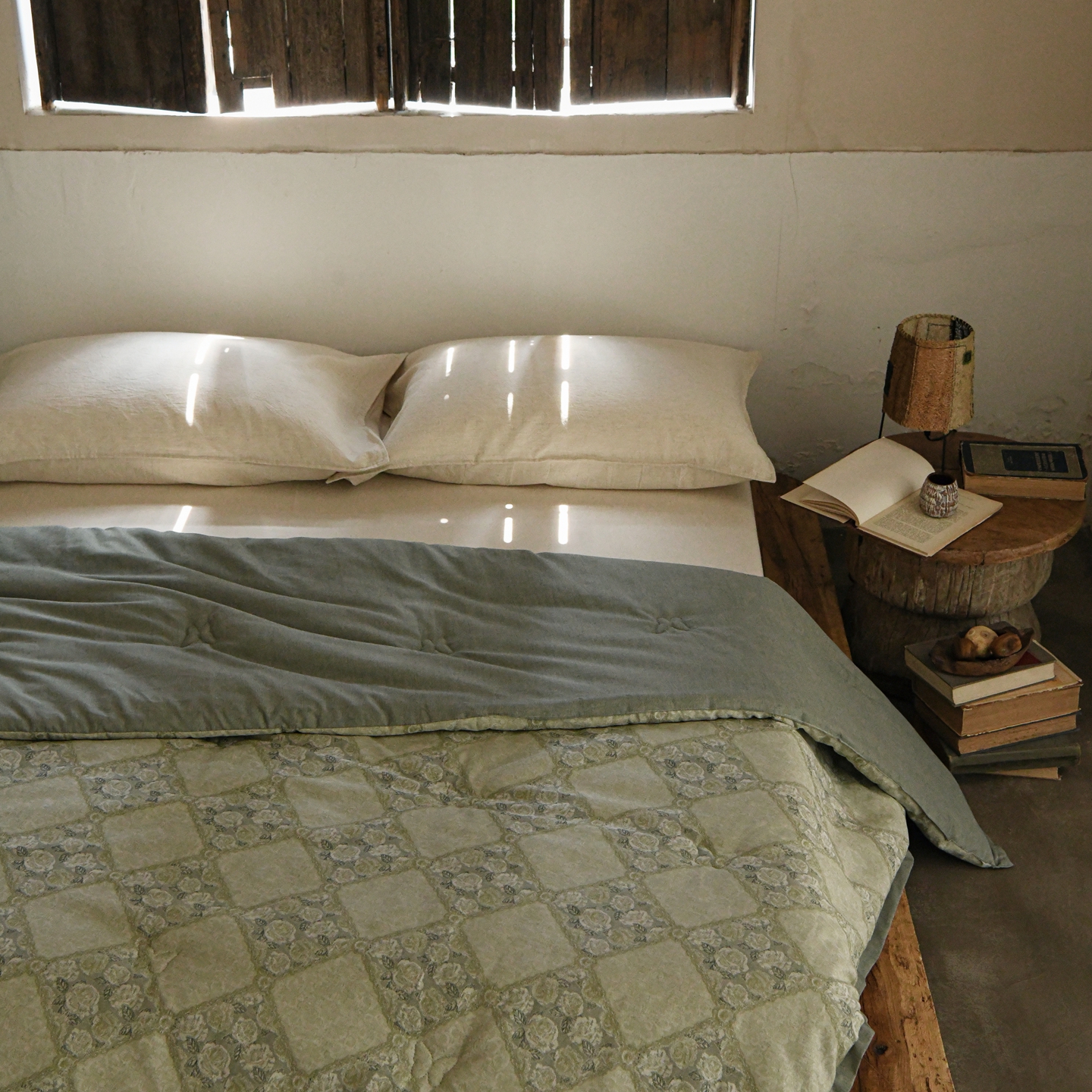 (总)松色家居 2026新款棉麻水洗色织春秋被-花韵-灰