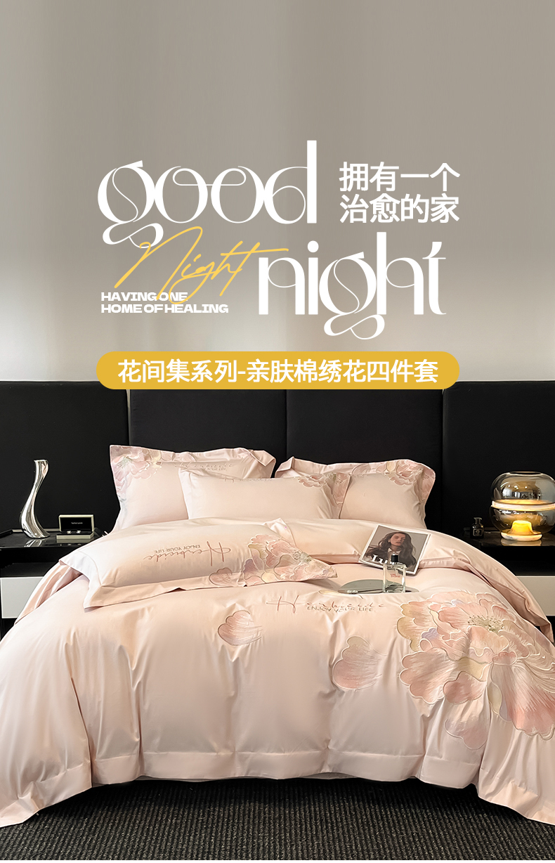 当前位置: 91家纺网 > 商品网购 > 床品套件 > 四件套 > 普通磨毛四件套 > 置顶家纺 2026春夏新款130克磨毛花间集刺绣小清新四件套-风格一 花间集-粉