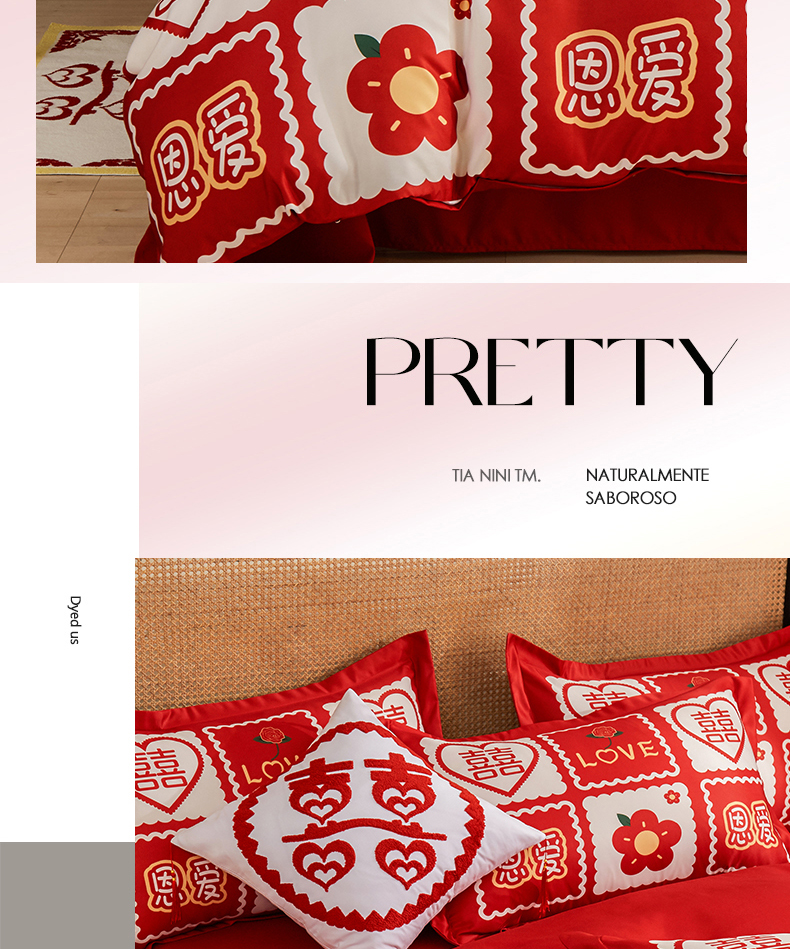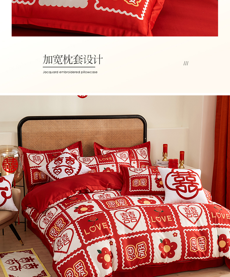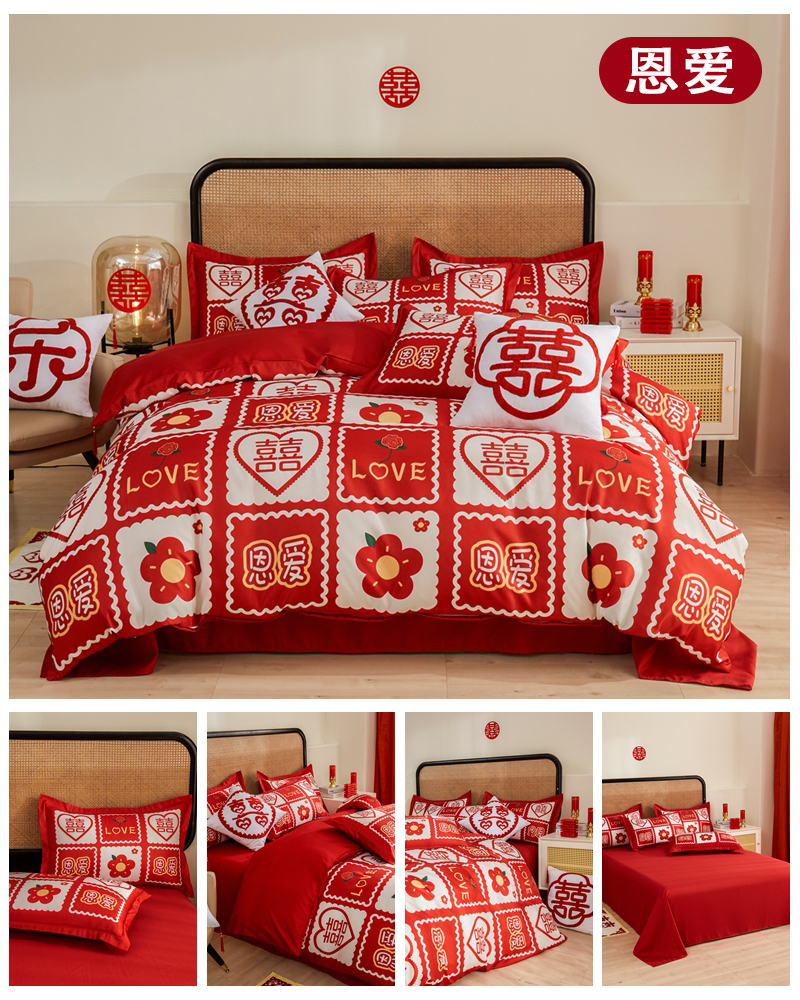 当前位置: 91家纺网 > 商品网购 > 床品套件 > 四件套 > 婚庆四件套 > 啊雅家居 2026新款大红婚庆数码印花四件套床单款床笠款 相爱格